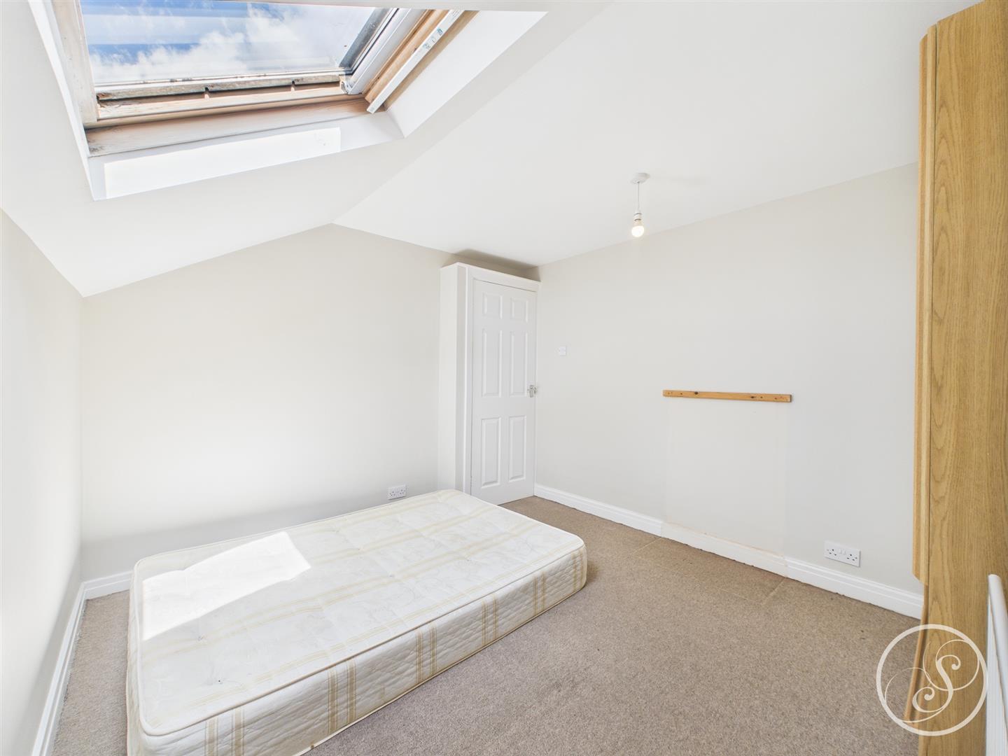 Bedroom 4 - The room benefits from tall dormer ceilings, carpeted flooring, and a central heating radiator.