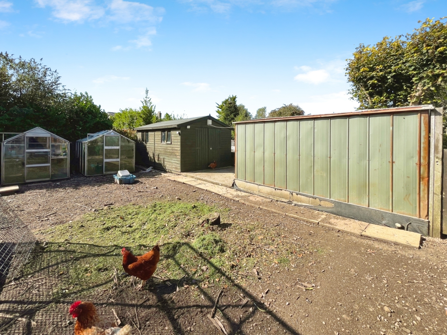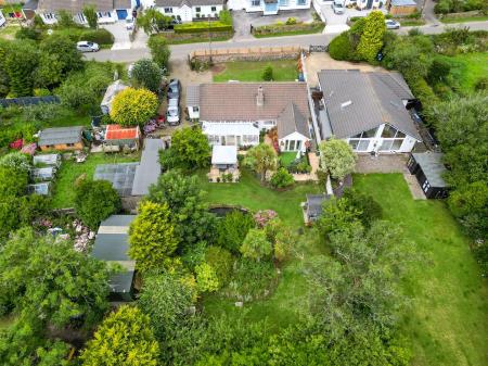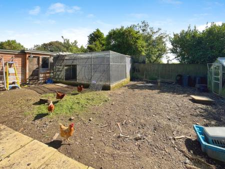 The bungalow boasts open-plan living areas that provide a bright and sociable layout that leads into a large conservatory that gives access and overlooks the rear garden, perfect for family life and entertaining. To the rear, a generous enclosed garden enjoys a high degree of privacy and features a tranquil fishpond along with a variety of established fruit trees. To the side is a large area which is enclosed and currently used as a chicken coup