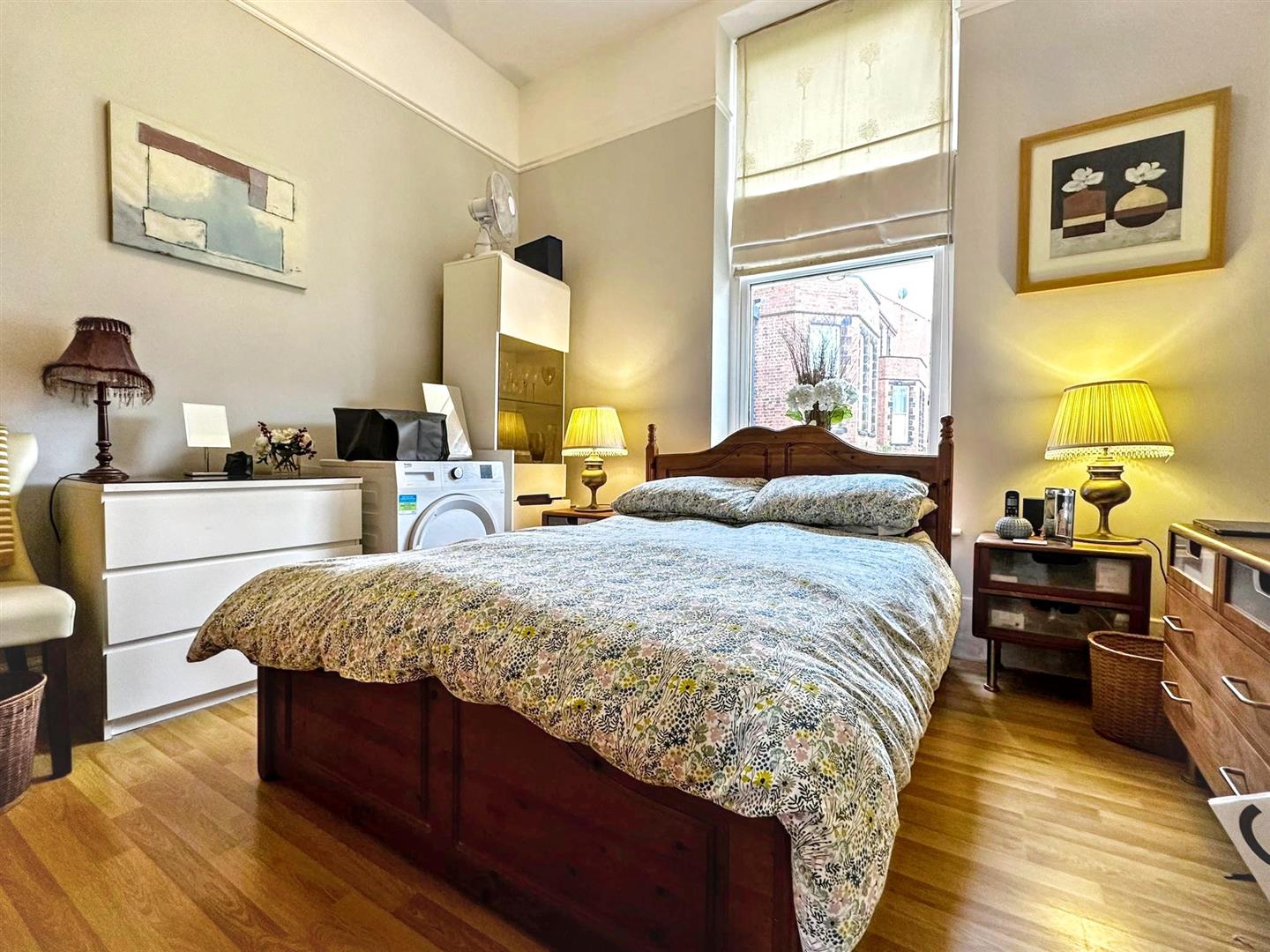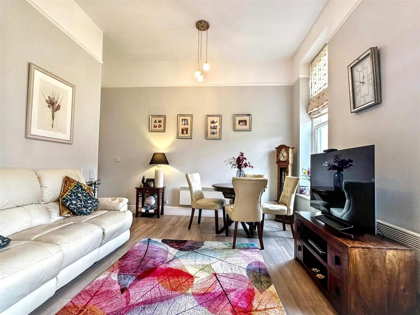 The kitchen is well laid out and perfectly positioned for day-to-day use with modern cabinetry. To the rear of the apartment, the standout feature is the impressive lounge - a spacious, light-filled room boasting high ceilings and two elegant sash windows that create a wonderful sense of volume and character. The combination of height, light, and period detailing gives this room a particularly warm and inviting atmosphere.