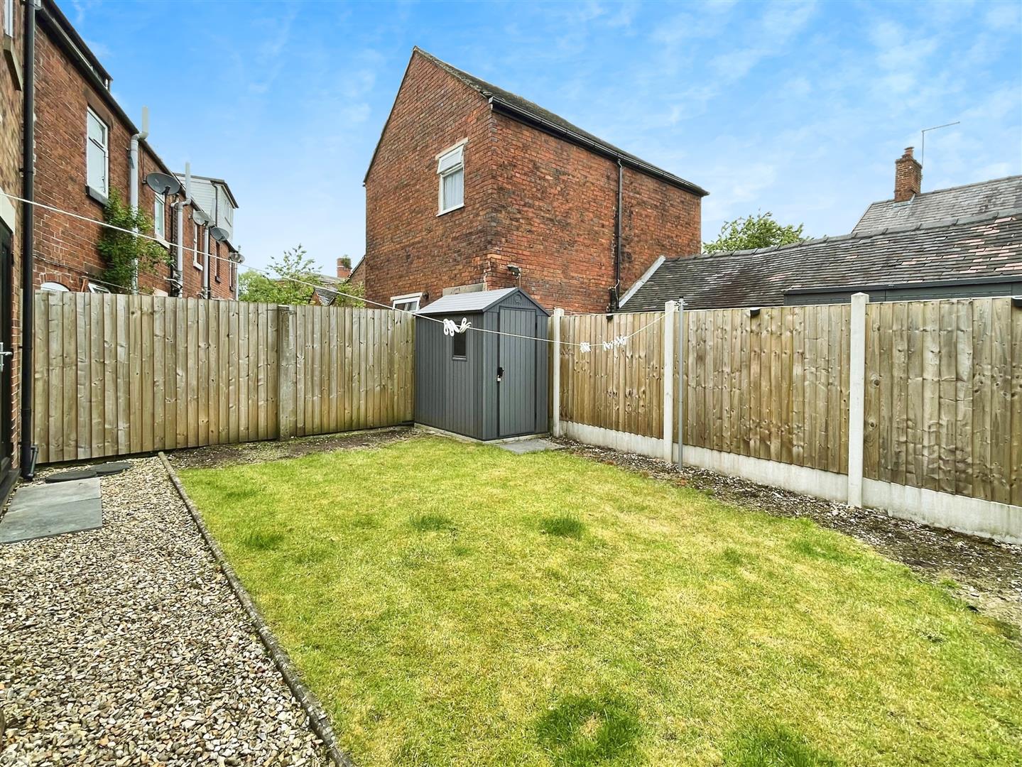 Outside - Off road parking to the front on a tarmacked driveway. Gated access to the rear where you will find a gravelled patio area and a laid to lawn area. Also provided is a good sized shed for storage.