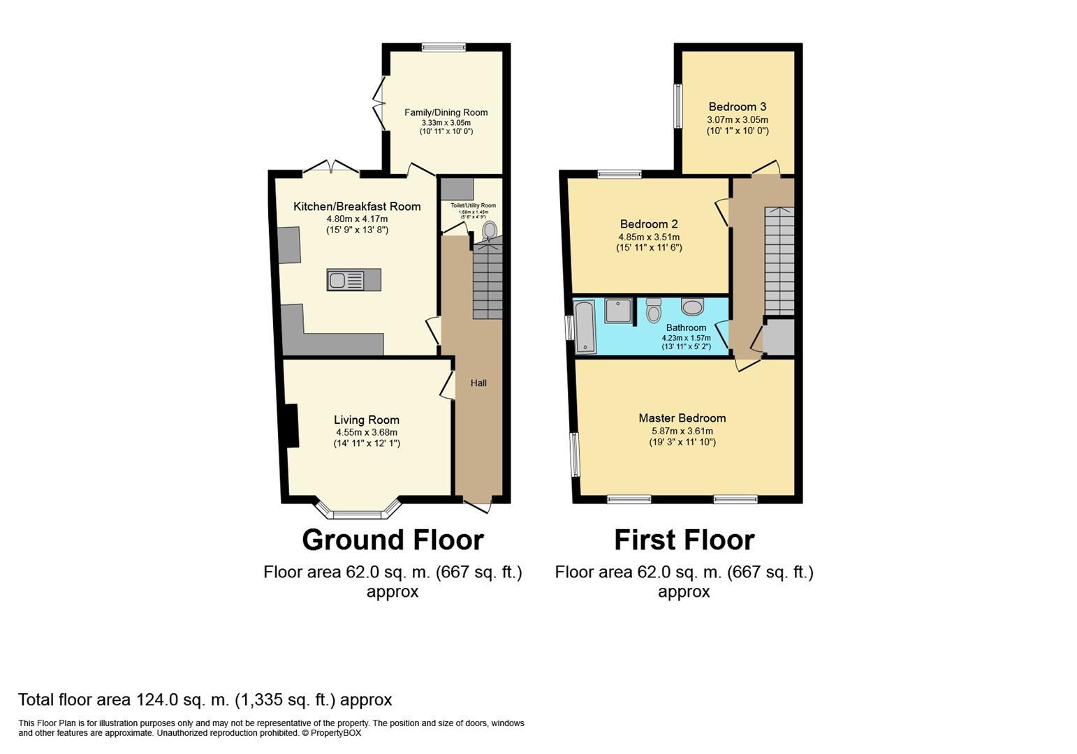 Utility Wc - 1.93 max x 2.38 max (6'3" max x 7'9" max) - Tiled flooring. Base units with ceramic sink and drainer unit with mixer tap above. Space for washing machine and tumble dryer. Wall mounted boiler. Extractor fan. Inset spotlights.