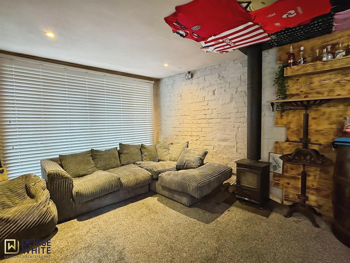 Snug - 3.05 x 2.74 (10'0" x 8'11" ) - Wood effect flooring. uPVC double glazed window to the rear aspect. French doors to the side aspect. Exposed brick feature wall. Multi fuel burner. Inset spotlights. Ceiling light.