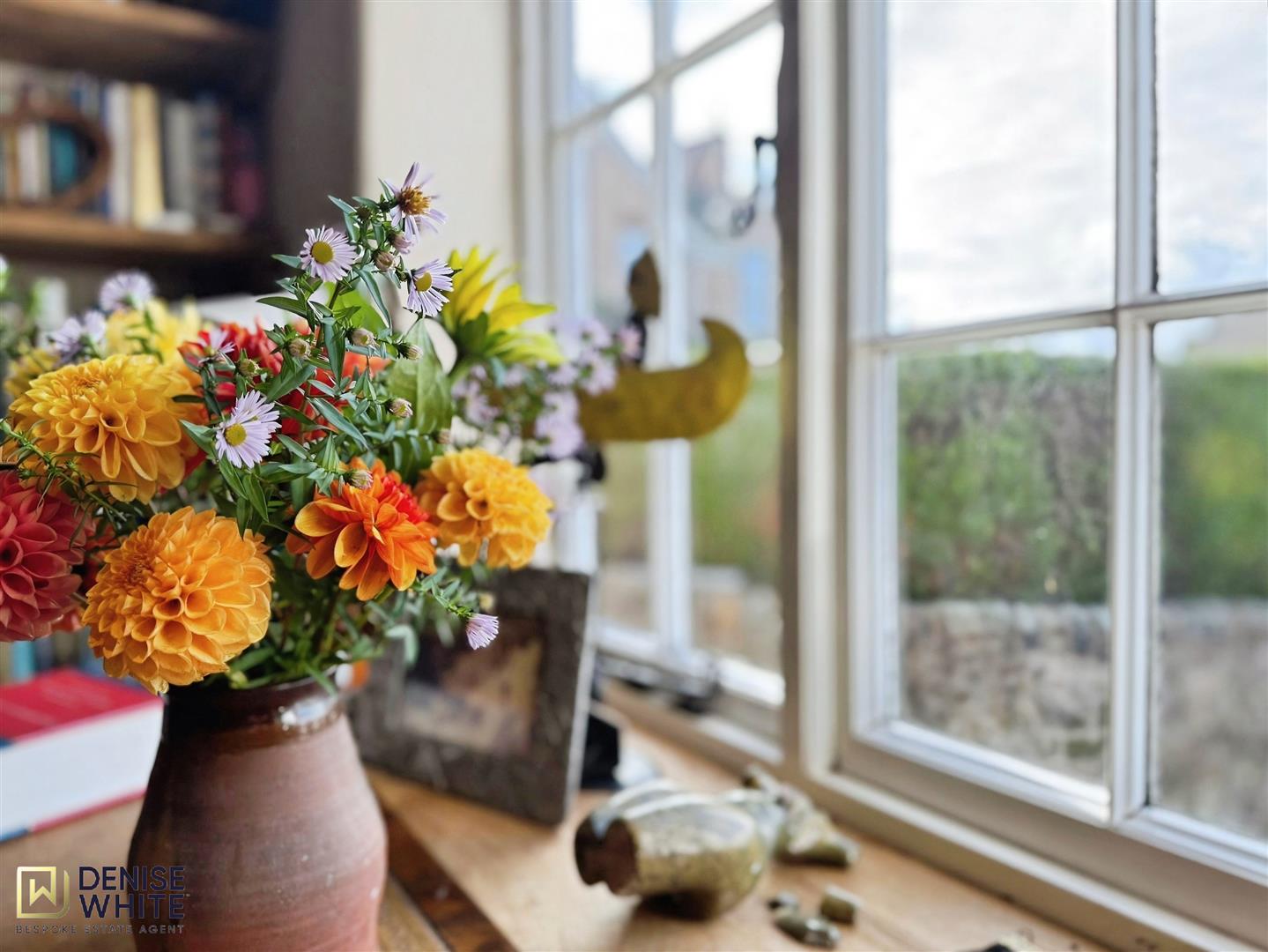 - Inviting living room with log-burning stove and bay window overlooking Brough Park