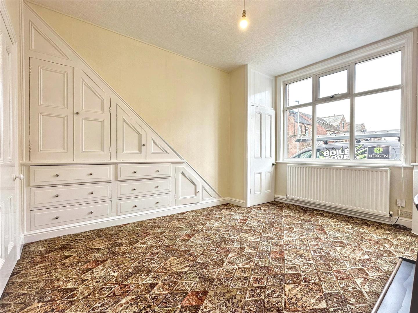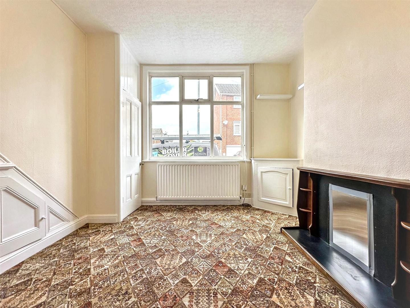 - Bright living room with under stairs storage