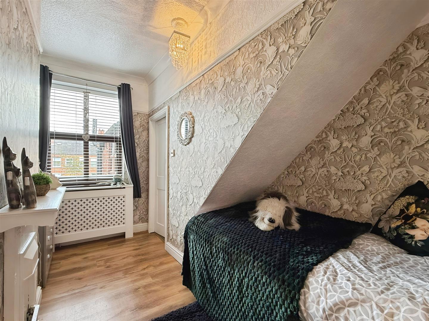 Bedroom One - 3.72 x 3.41 max (12'2" x 11'2" max ) - Laminate flooring. Wall mounted radiator. UPVC double glazed window to the front aspect. Ceiling light.