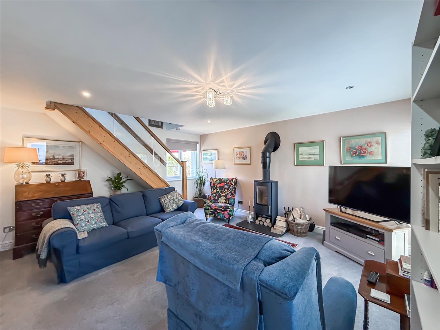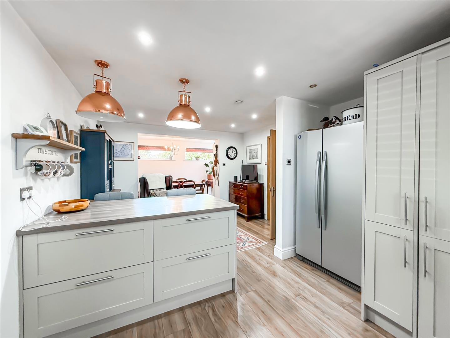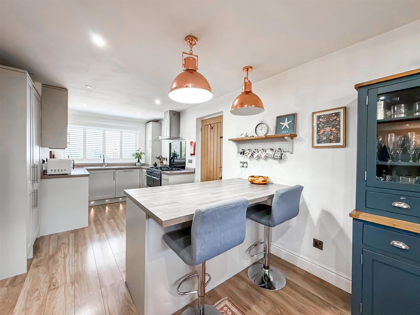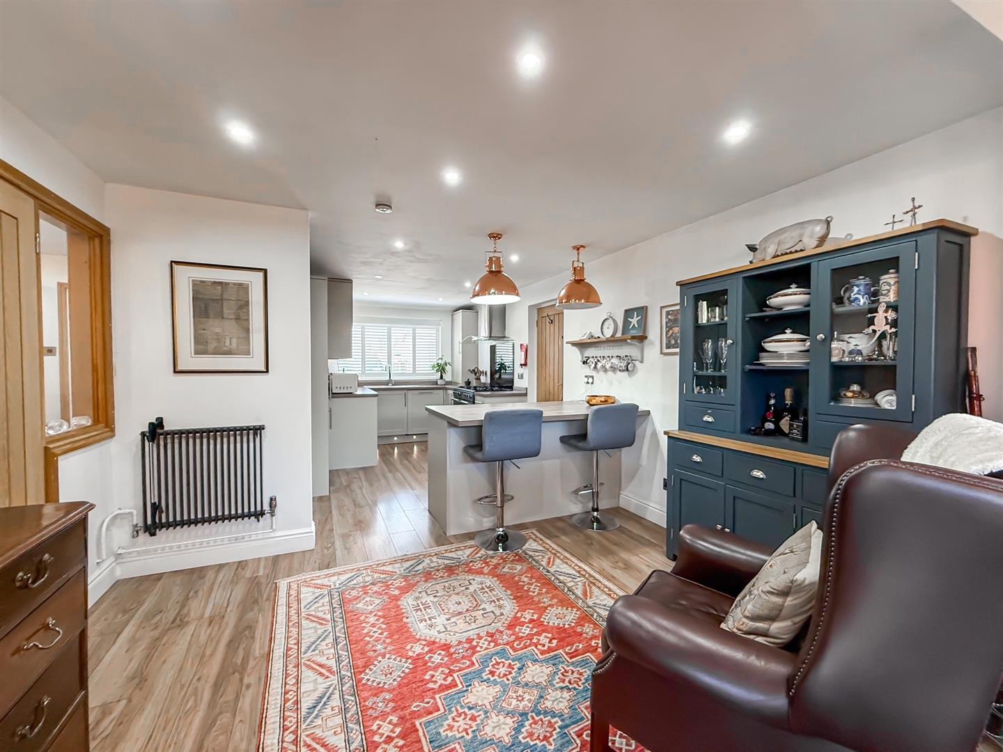From the front entrance you enter the porch and then on into the hallway with shower room fitted with double walk in shower and WC. The heart of this home is the dual aspect lounge with contemporary wooden and glass staircase and modern log burner. The kitchen/family room has a range of matching wall and base units, integrated dishwasher, space for both a range cooker and American style fridge freezer plus a useful breakfast bar. There is also a utility cupboard for laundry appliances. The garage can be accessed from the kitchen.