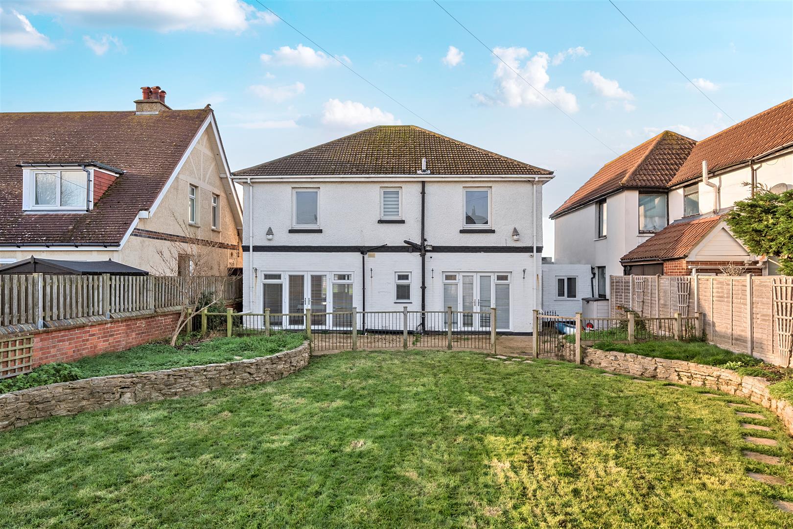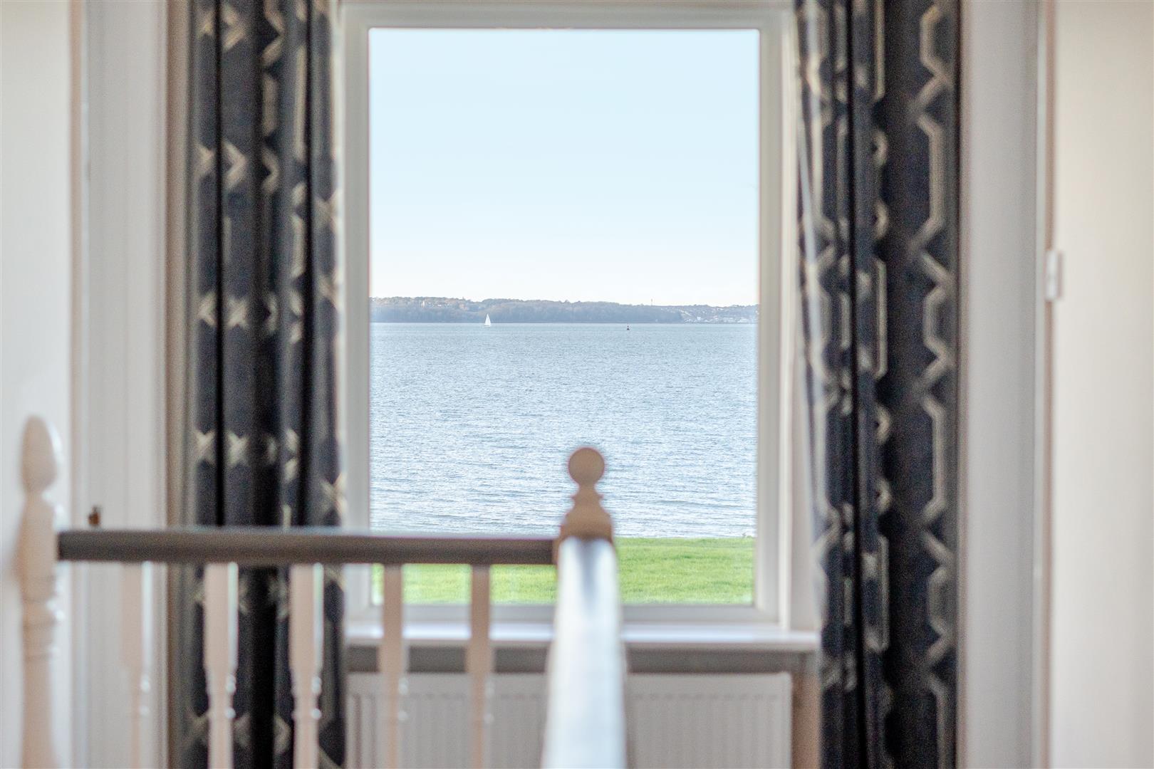 Immediately on entering via an inner porch, the Entrance Hall showcases the fantastic high ceilings and deep skirtings which are evident throughout the property and the whole house underwent a significant refurbishment by my clients in 2022 and has also recently been redecorated with new carpets throughout. There are two well-proportioned reception rooms to the front of the house affording stunning views over the water, one of them features a fireplace housing a gas coal effect fire with wooden surround and flanked on both sides with built-in bookcases. The other reception room is particularly generous running the full depth of the house with a feature wooden room divider and with double doors leading to outside. The Kitchen has been fitted with white high gloss handless cupboards with an island and a range of integrated appliances are included. The property benefits from a large Wet Room which is fully tiled with a large shower area with drencher. There is a further Utility Room with space for appliances, and a doorway leads into a storeroom. The original staircase leads up to a spacious Landing with a large picture window giving far reaching views and there are four superb bedrooms which are complimented by a contemporary Family Bathroom. Outside the back garden has a large terrace for al fresco dining which spans the width of the house and there is a gated fence leading through to an area of lawn flanked by raised stone flowerbeds and a back gated leading to a parking area.