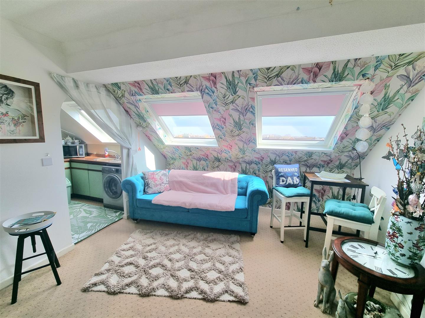 The flat is just a short stroll from local shops, bus routes, and the beautiful beach, allowing residents to enjoy the vibrant community and stunning coastal views. Inside, the property is well-appointed with double glazing and recently updated electric heating, ensuring a warm and inviting atmosphere throughout the year.