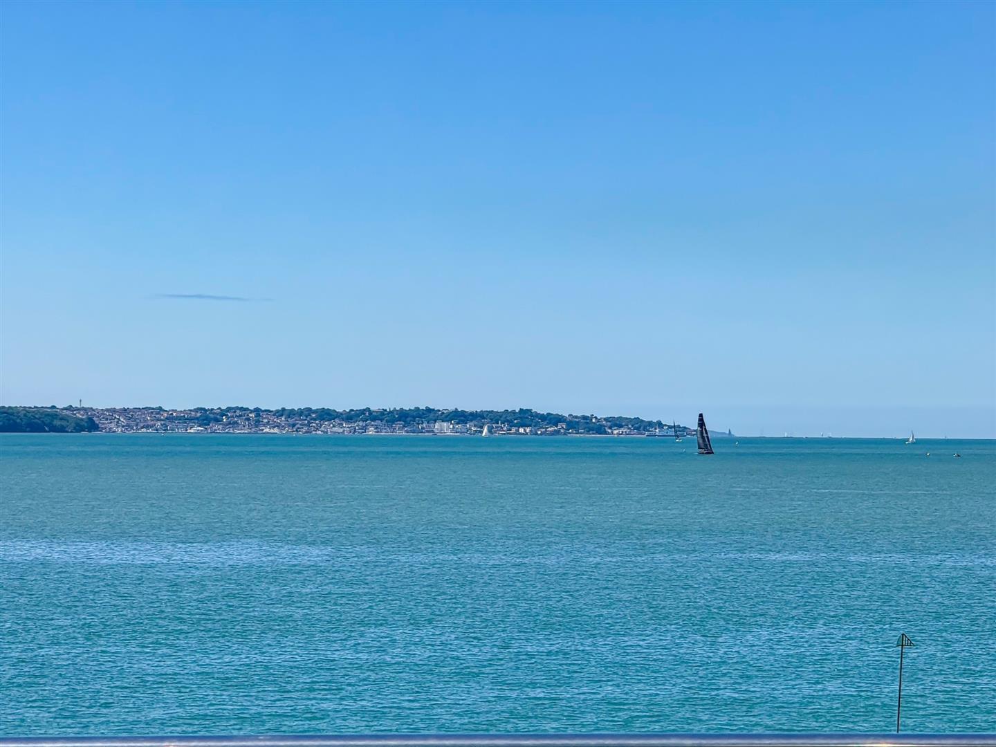 With attractive parquet flooring, a double glazed window to the side, a built in cupboard to one corner housing the replacement combination hot water boiler, radiator, coved and smooth finish ceiling. There is triple glazed bi-fold doors that offer a superb Solent and Isle of Wight view and pull back to bring the view in. An archway leads to the: