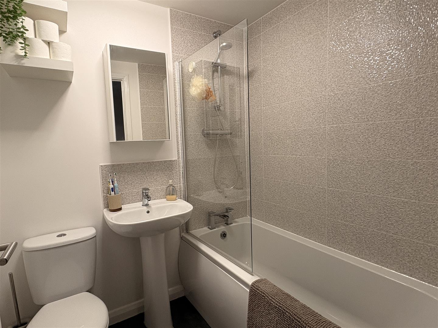 Bathroom - 2.03m x 1.88m (6'8 x 6'2) - Fitted with a three piece suite comprising bath with shower over, pedestal basin and wc.