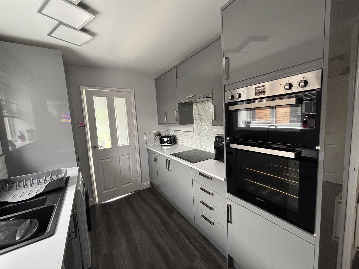 Kitchen - 4.60 x 2.36 (15'1" x 7'8") - UPVC double glazed window to side, laminate flooring, spotlights to ceiling,. Fitted with a range of base, drawer & eye level units, work surfaces, one and a half bowl sink unit. Built-in electric double oven, induction hob with extractor hood. Wall mounted Worcester combination boiler.