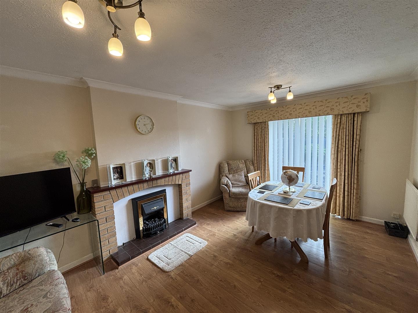 Lounge-Diner - 4.85m x 3.57m (15'10" x 11'8") - A delightful living room with ample space for a table and chairs. Sliding patio doors to rear, gas fire, two radiators, laminate flooring.