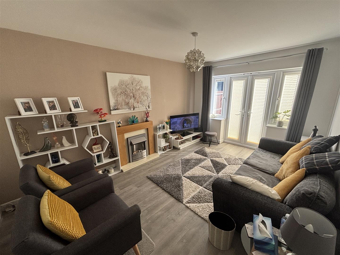 Lounge - 4.57m x 3.11m (14'11" x 10'2") - A delightful bright and airy rear facing lounge. UPVC double glazed French doors to rear with internal fitted blinds, laminate flooring, radiator, electric fire.
