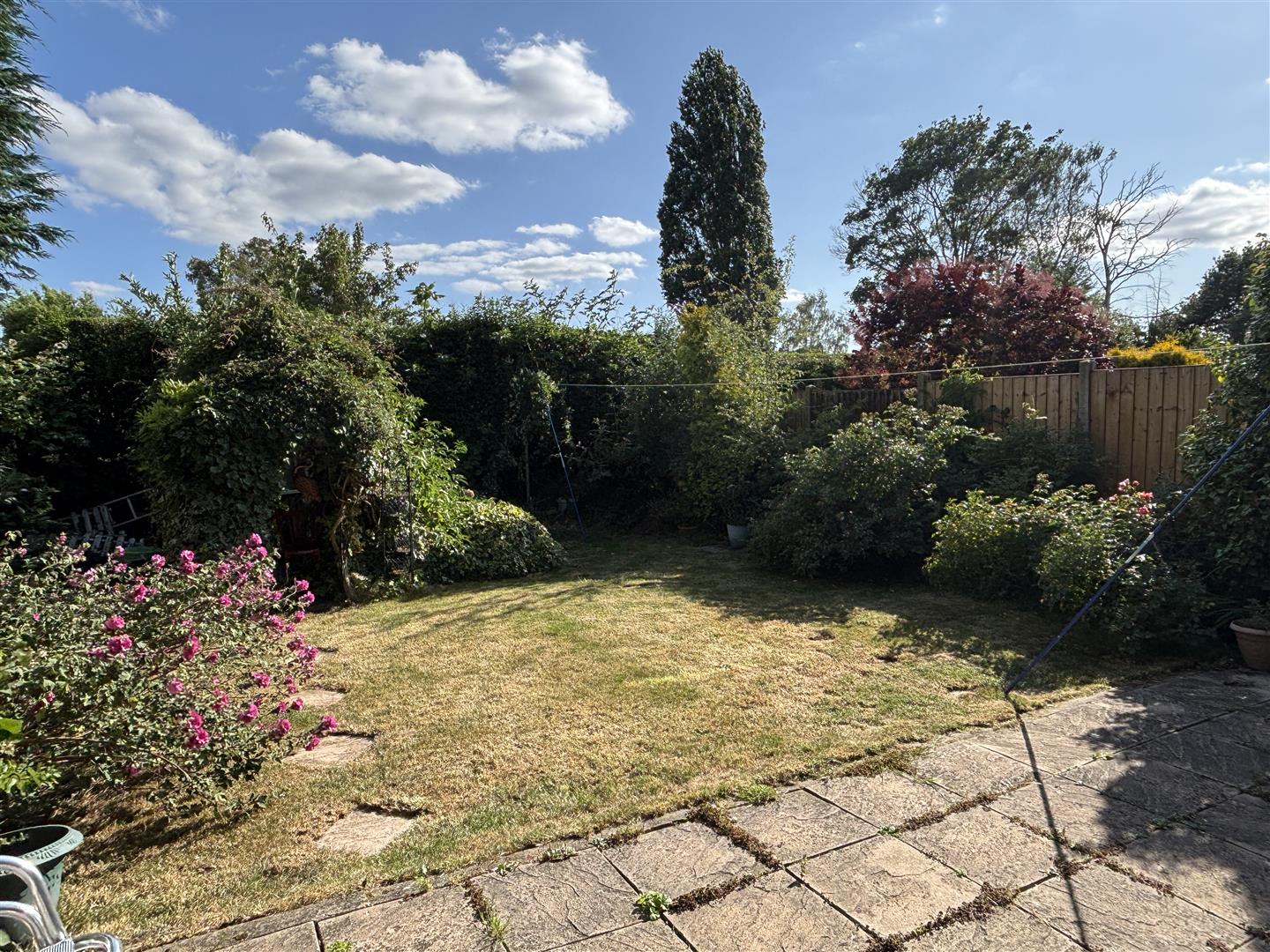 The rear garden is South-West facing with a paved patio, lawns, well stocked borders with established shrubs, fully fenced boundaries.