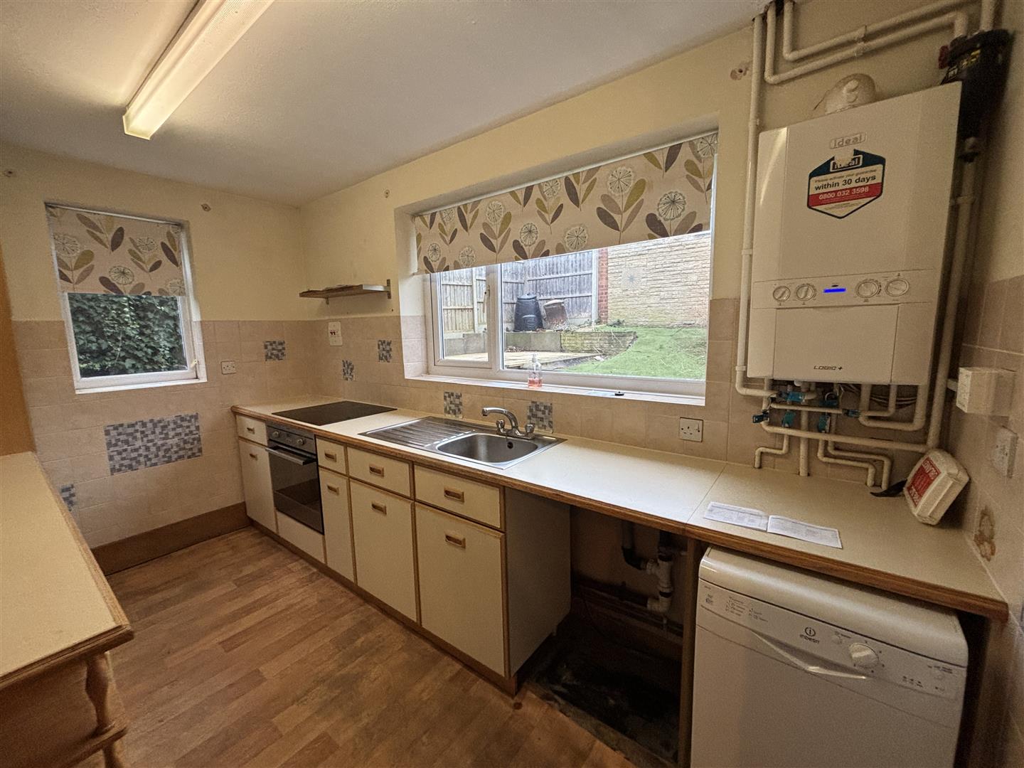 Kitchen - 3.61m x 2.91m (11'10" x 9'6") - UPVC double glazed windows to rear and side, vinyl flooring, radiator. Fitted with a range of base, drawer & eye level units, work surfaces, sink unit with mixer taps. Electric oven, ceramic hob. Wall mounted central heating boiler which we understand is 8 years old & serviced April 2025.
