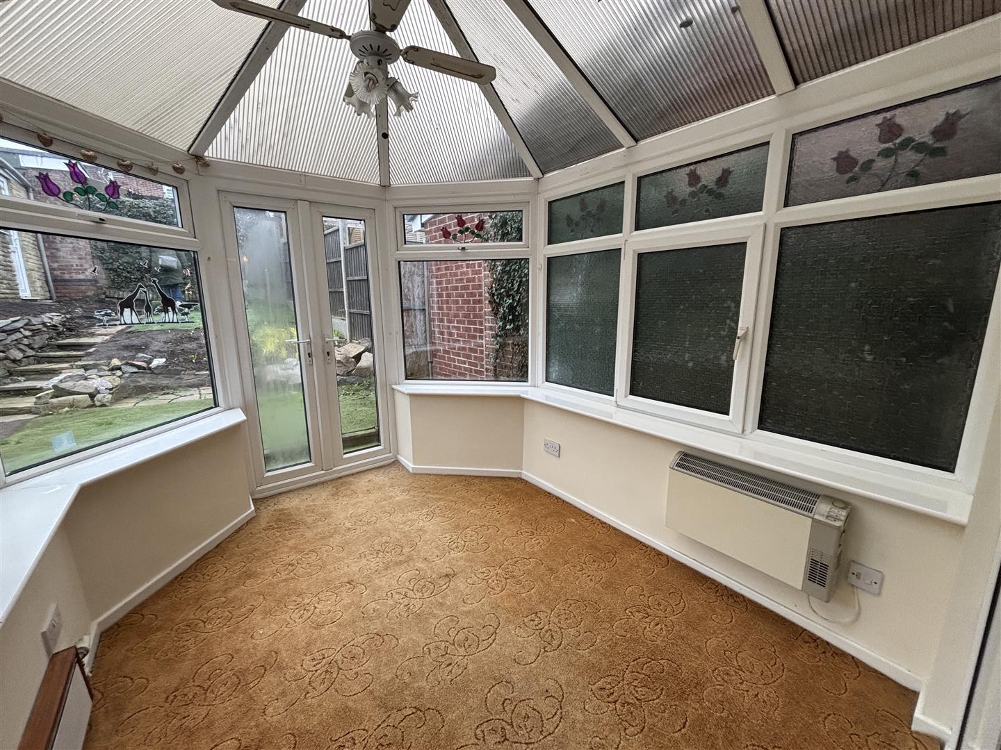 Conservatory - 3.04m x 2.70m (9'11" x 8'10") - A generously sized UPVC double glazed conservatory with brick base, polycarbonate roof, electric heater and French doors leading out to the rear gardens.