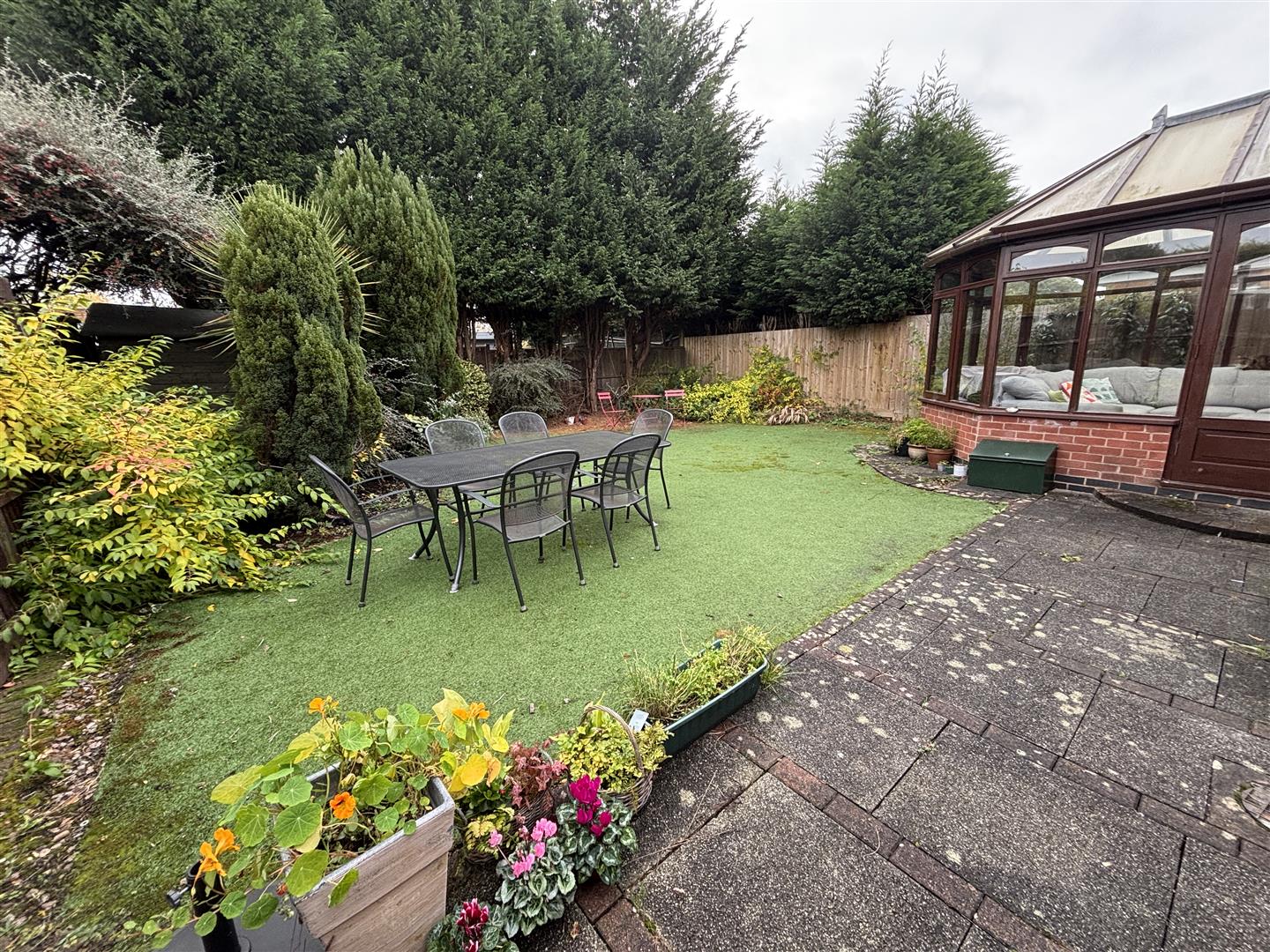 The South East facing rear garden approx 40' with trees, fully fenced boundaries, gated side access.