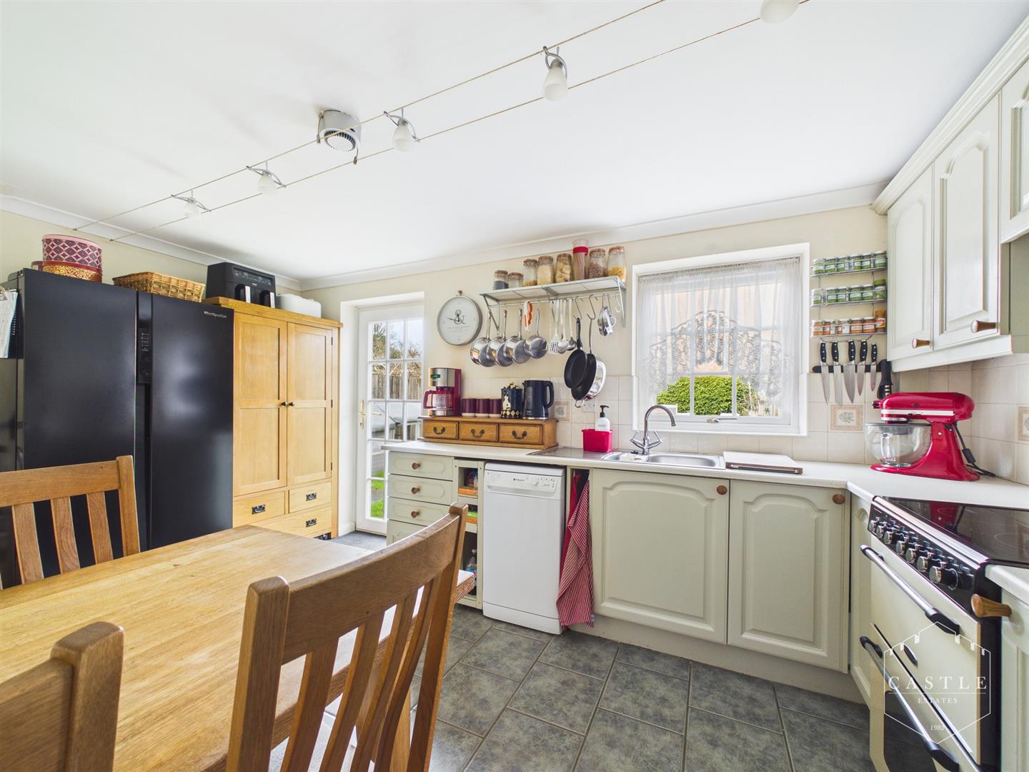 Ktichen Diner - 4.55m x 3.05m (14'11 x 10'0) - having a range of shaker style kitchen cupboards, wall units and drawers, 1.5 sink with chrome mixer tap and draining board, space and plumbing for washing machine and dishwasher, tiled flooring and UPVC window to rear
