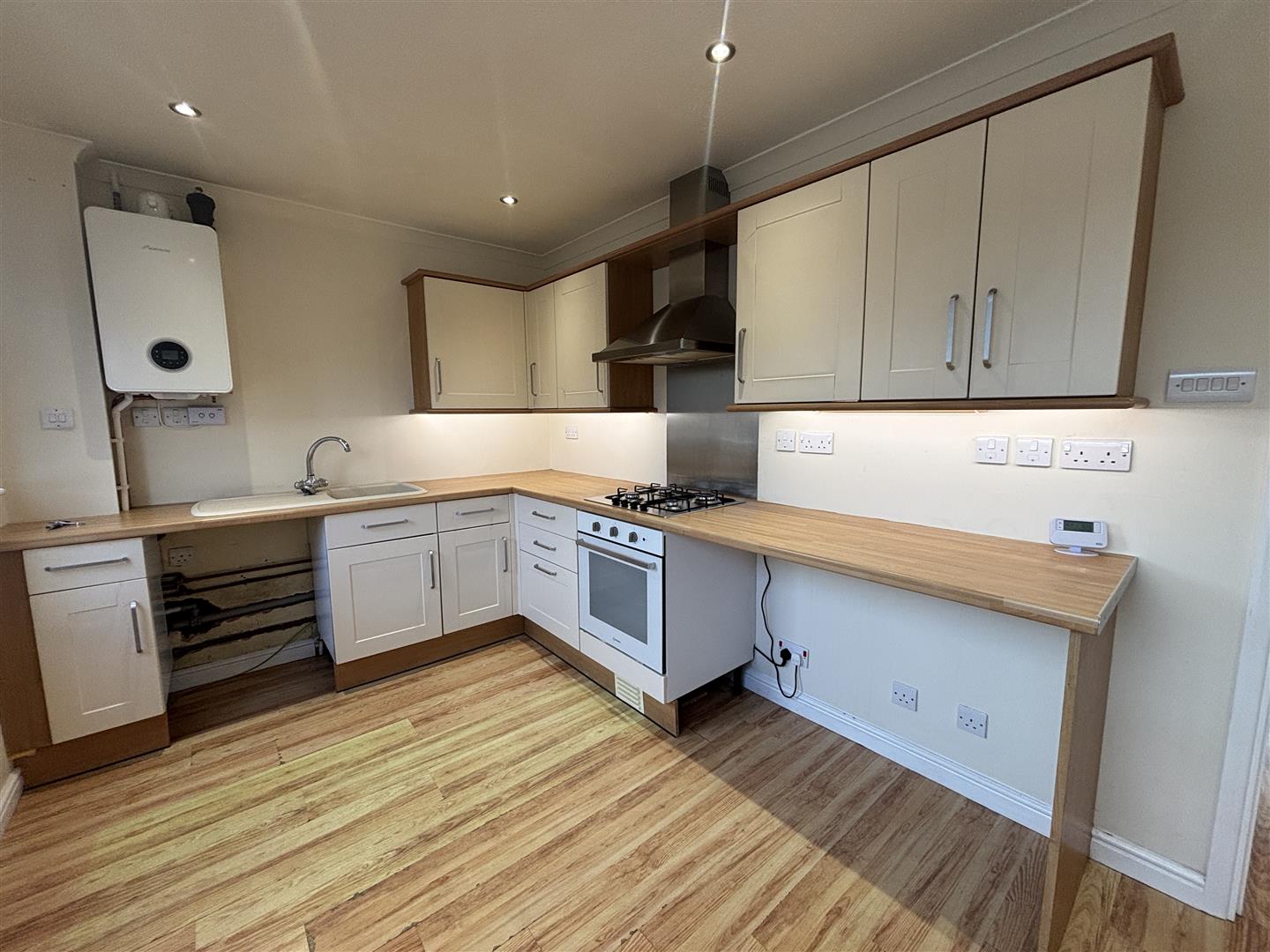 Kitchen-Diner - 4.33m x 2.58m (14'2" x 8'5") - A well equipped and spacious kitchen-diner. Two UPVC double glazed windows and door to rear, laminate flooring, spotlights and coving to ceiling, radiator. Fitted with a range of modern base, drawer & eye level units, work surfaces, sink unit with mixer tap. Built-in electric oven, gas hob with extractor hood. Provision for washing machine/dishwasher. Wall mounted Worcester combination boiler fitted March 2023.