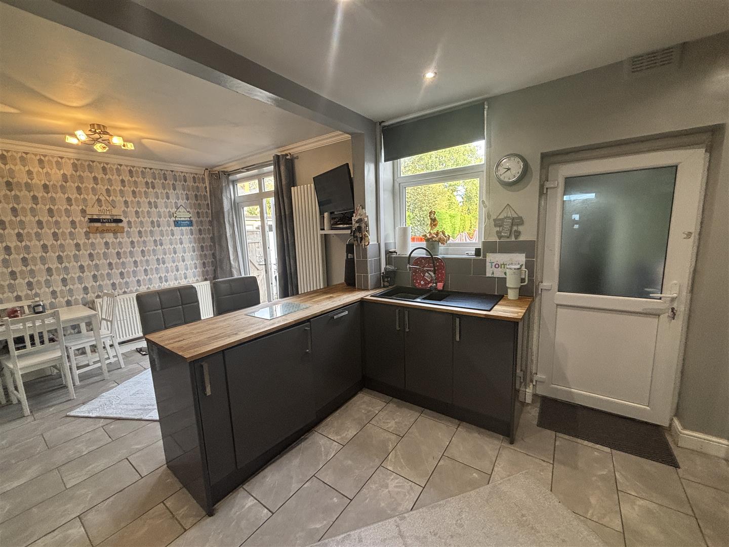 Kitchen-Diner - 6.28m x 3.26m (20'7" x 10'8") - A good sized kitchen-diner with ample space for a large table and chairs. UPVC double glazed window and door to rear in the kitchen area plus a set of UPVC double glazed French doors in the dining area opening out to the rear patio. Two radiators including an upright designer rad. Fitted with a range of base, drawer & eye level units, work surfaces with tiled surrounds, one-and-a-half bowl sink unit with mixer taps. Integrated dishwasher and washing machine.