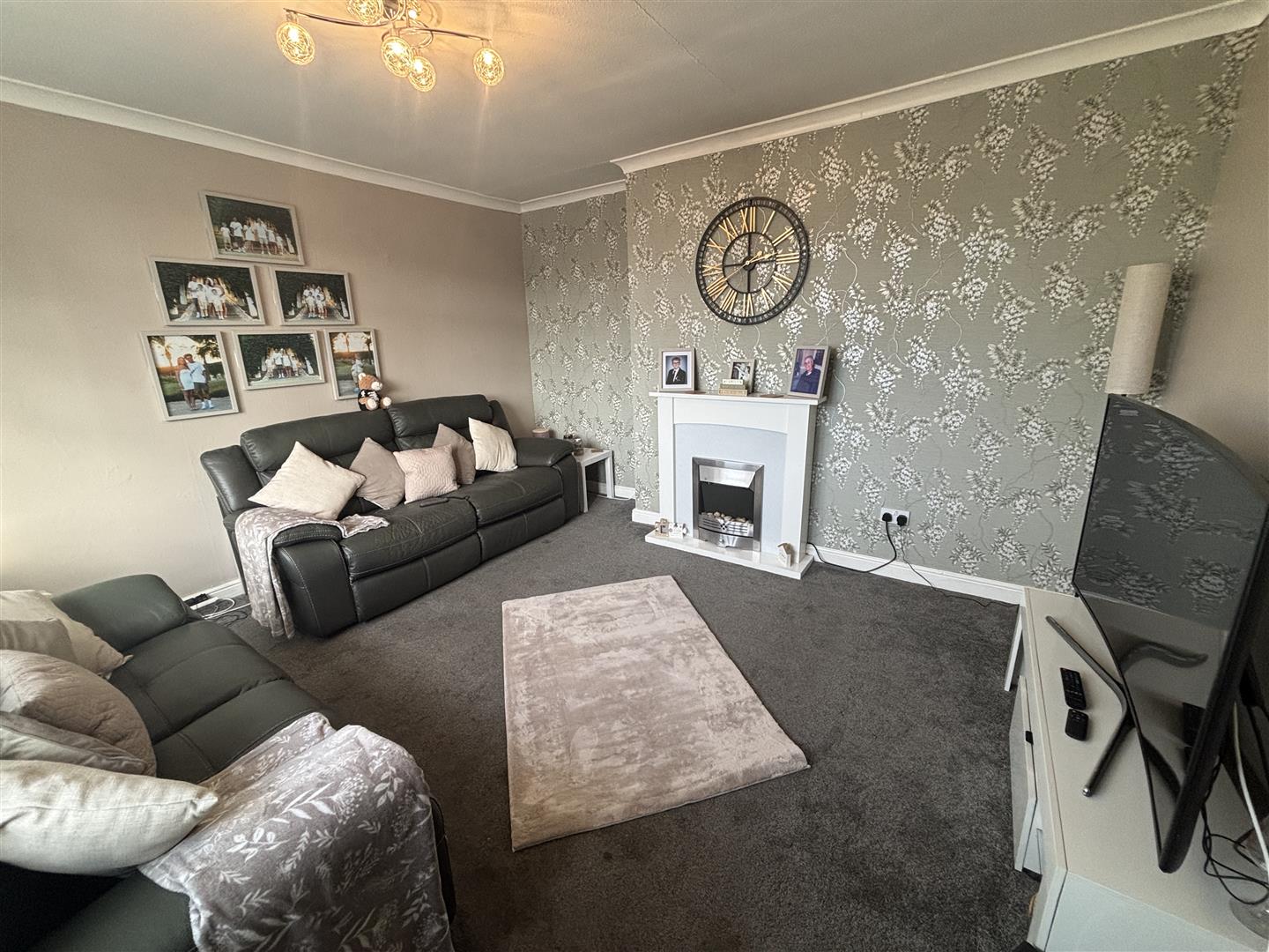 Lounge - 4.30m x 4.21m (14'1" x 13'9") - A generous sized living room at the front of the property. UPVC double glazed bow window to front, neutral fitted carpet, electric fire set in fireplace, coving to ceiling, radiator