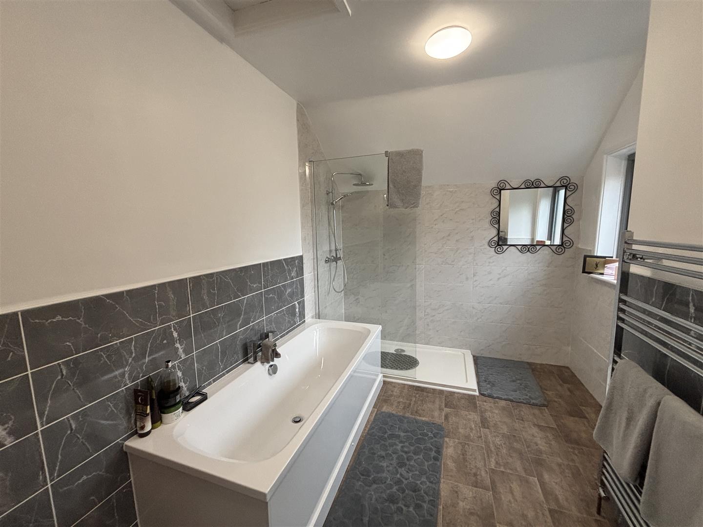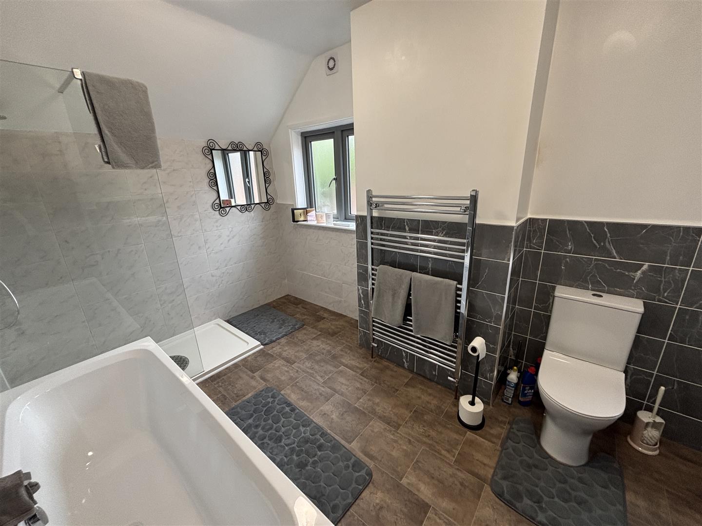 Bathroom - 4.75 x 2.40 (15'7" x 7'10") - Two double glazed opaque windows, chrome heated towel rail, double end panelled bath, walk-in shower enclosure, vanity wash hand basin, wc, access to loft.