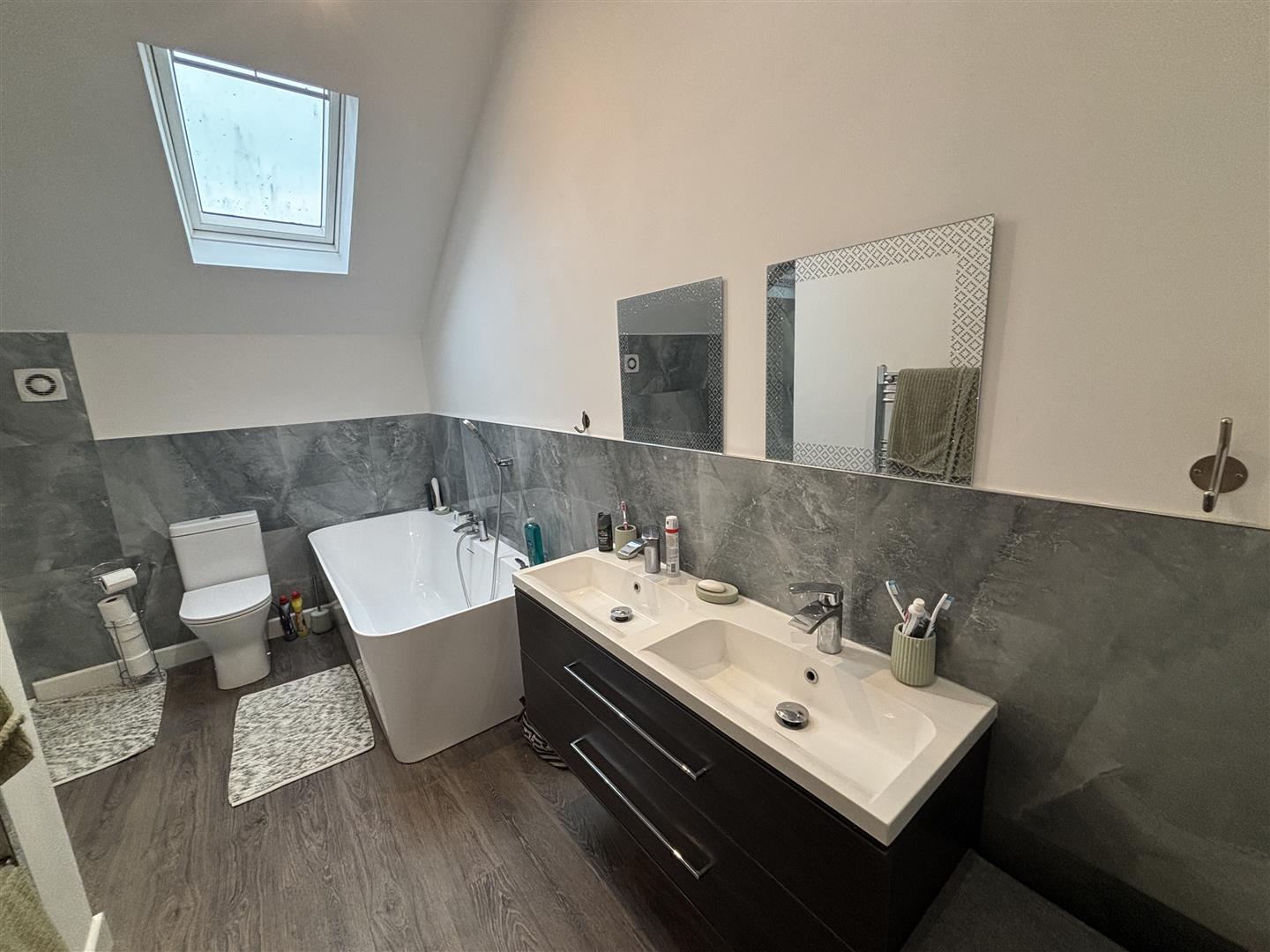 En-Suite Bathroom - V-lux window, bath, walk-in shower enclosure, twin wash hand basin, wc.