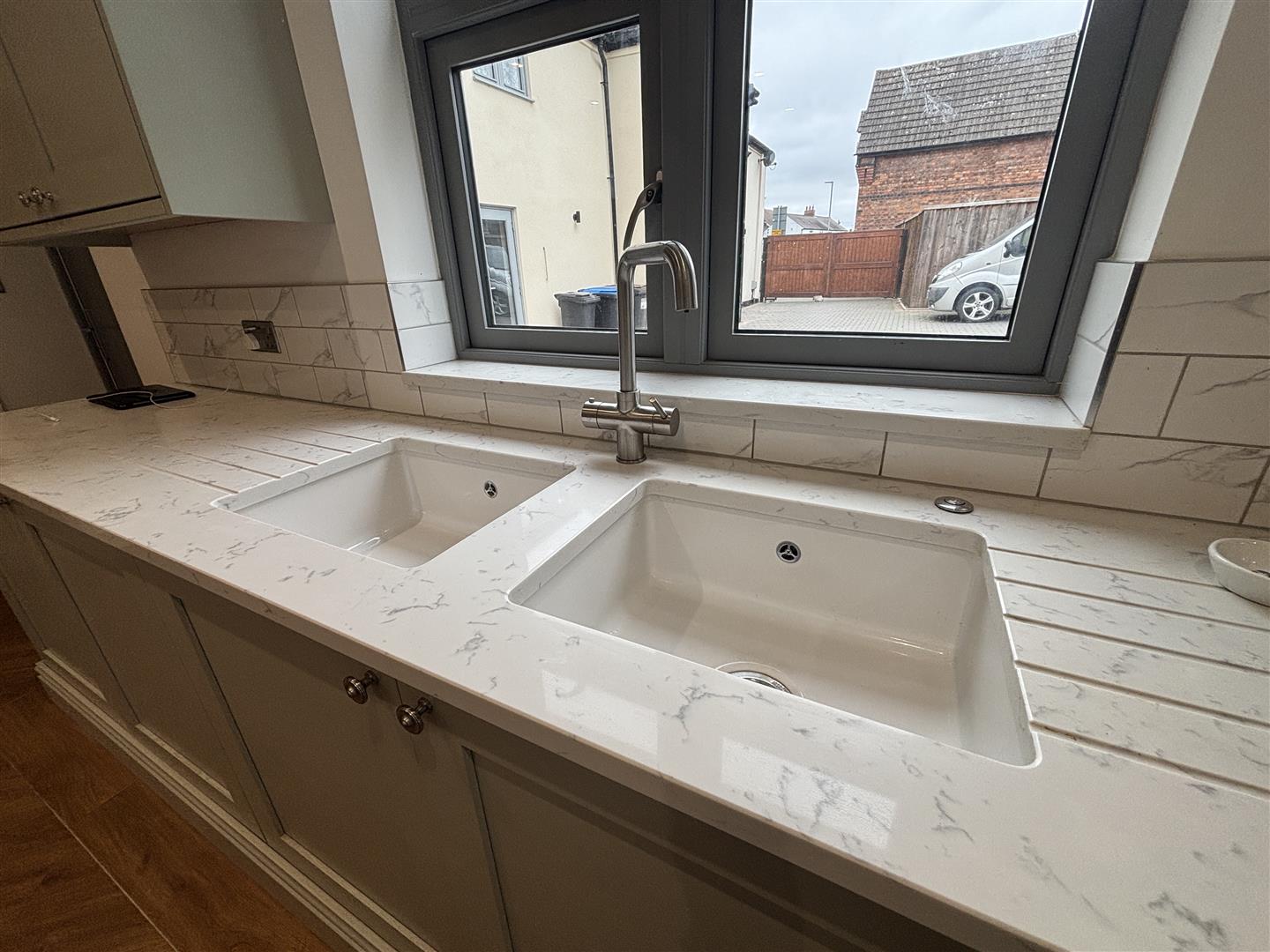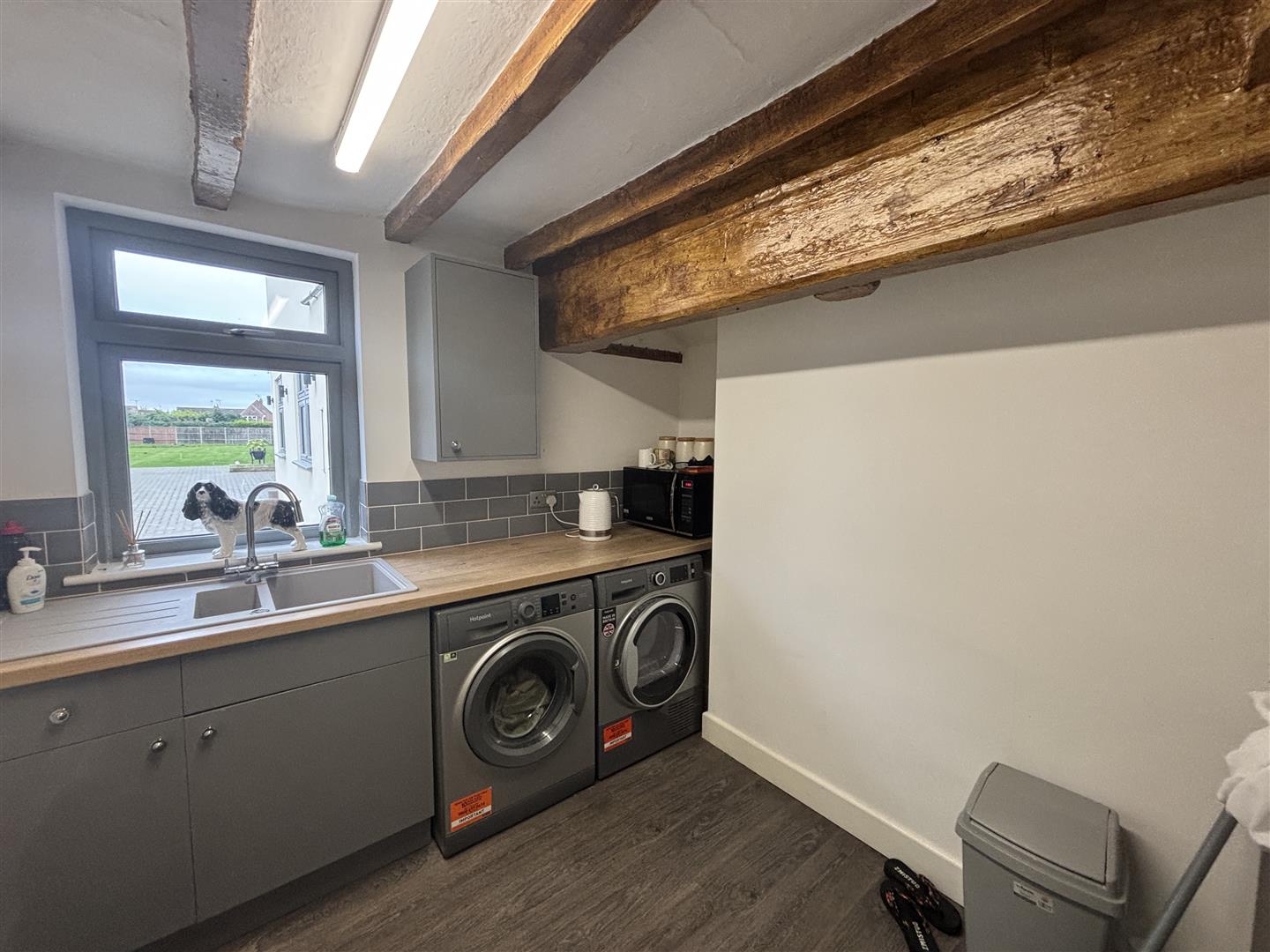 Utility Room - 3.06 x 2.70 (10'0" x 8'10") - Double glazed window to rear, beams to ceiling, vinyl flooring, fitted with a range of base, drawer and eye level units, work surfaces, tiled splashback, composite sink unit with mixer tap. Provision for washing machine. & dryer.