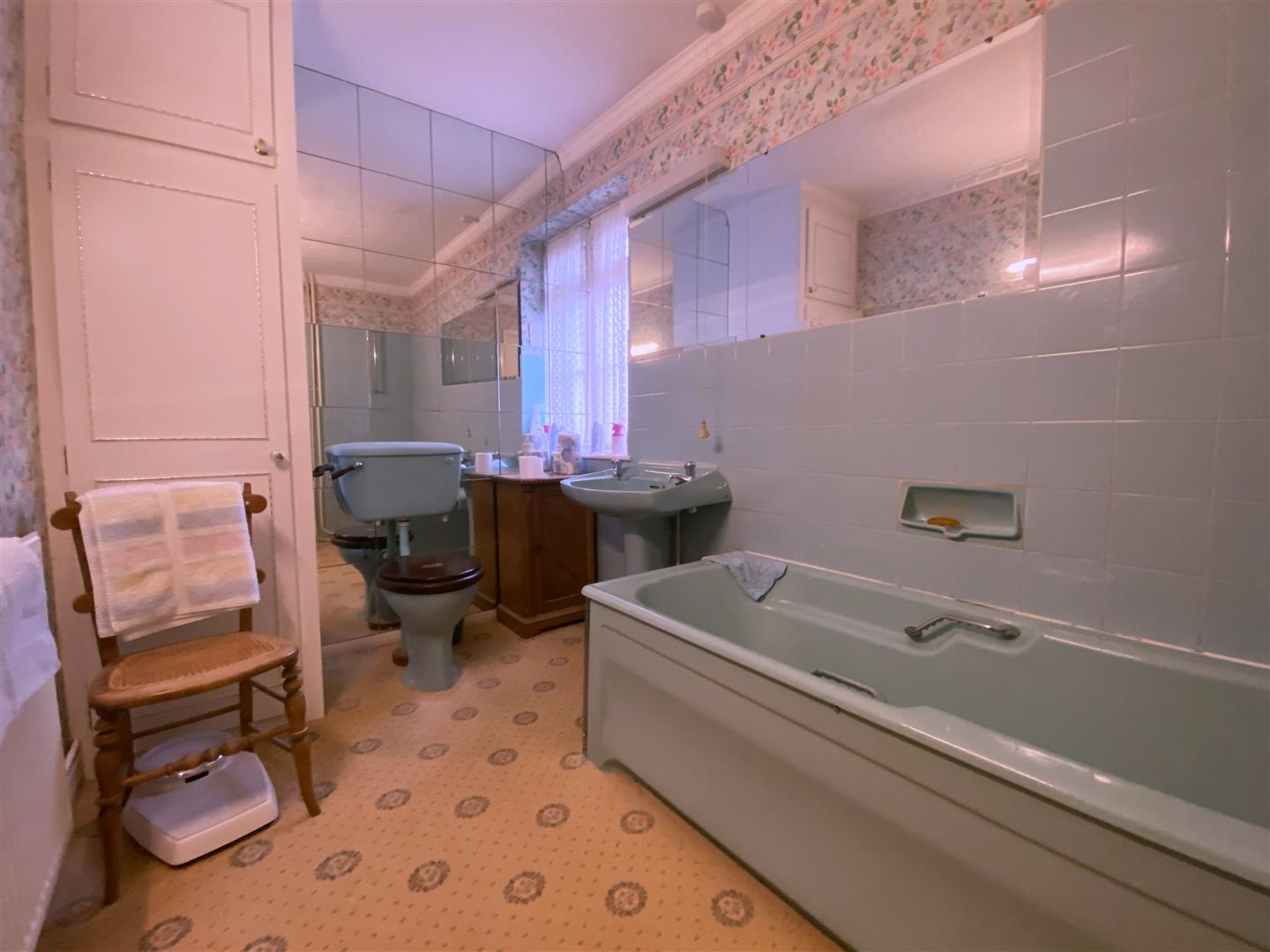 Bathroom - 2.90 x 1.89 (9'6" x 6'2") - Fitted with a three piece suite comprising low level wc, pedestal basin and bath.