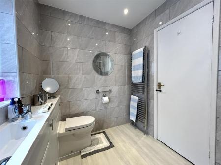 Wc - 1.91m x 1.47m (6'3 x 4'10) - Fitted with a vanity unit and basin, WC, radiator and obscure uPVC double glazed window to the side aspect.