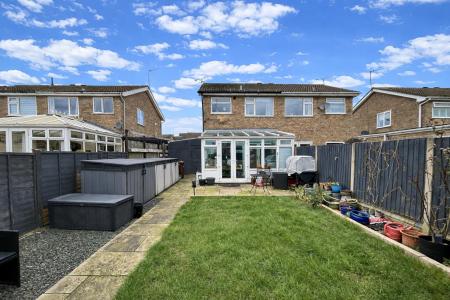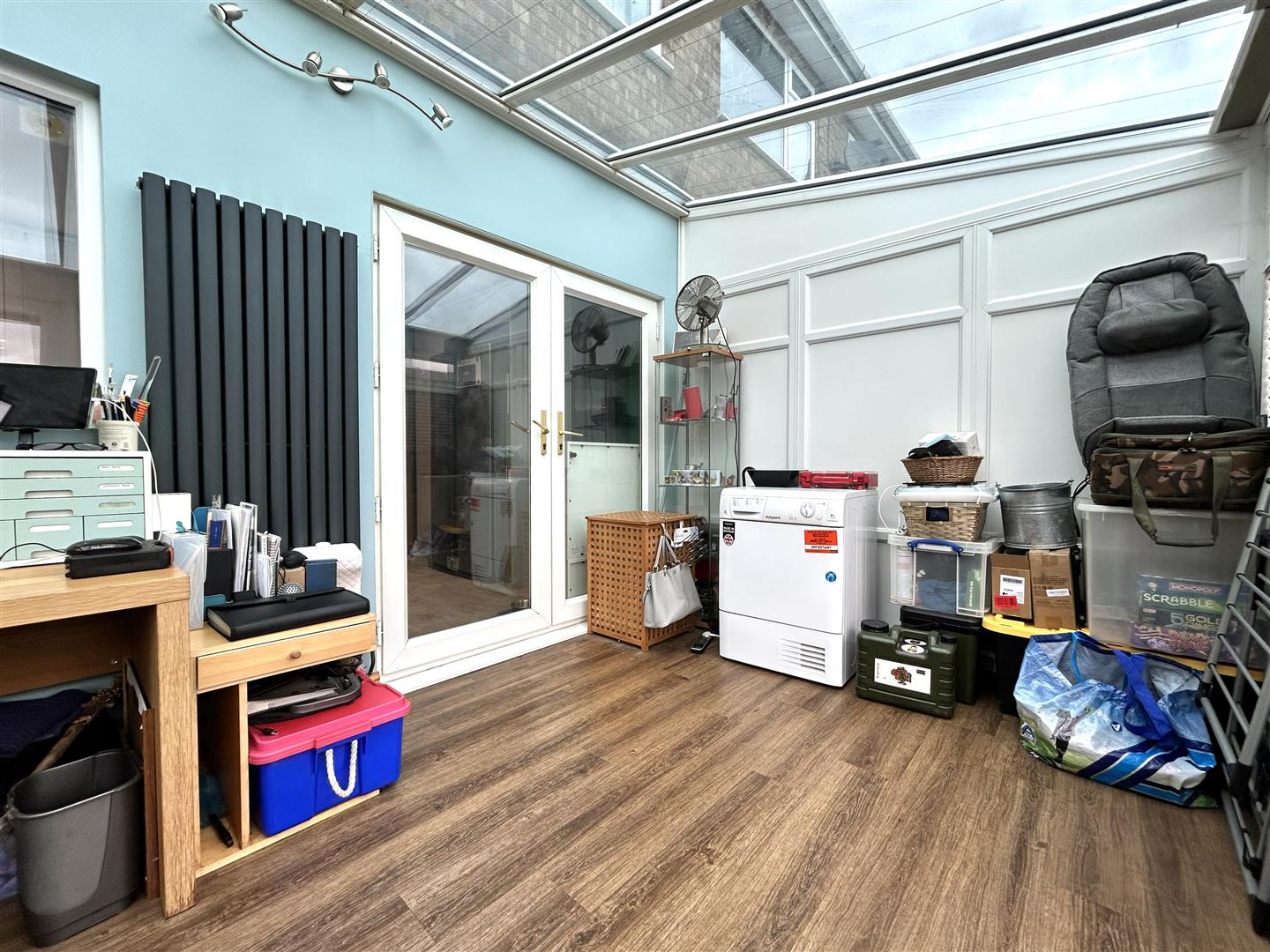 Conservatory - 4.32 x 2.65 (14'2" x 8'8") - With blue tinted glass roof, power, light, heating and French doors leading out onto the rear garden.