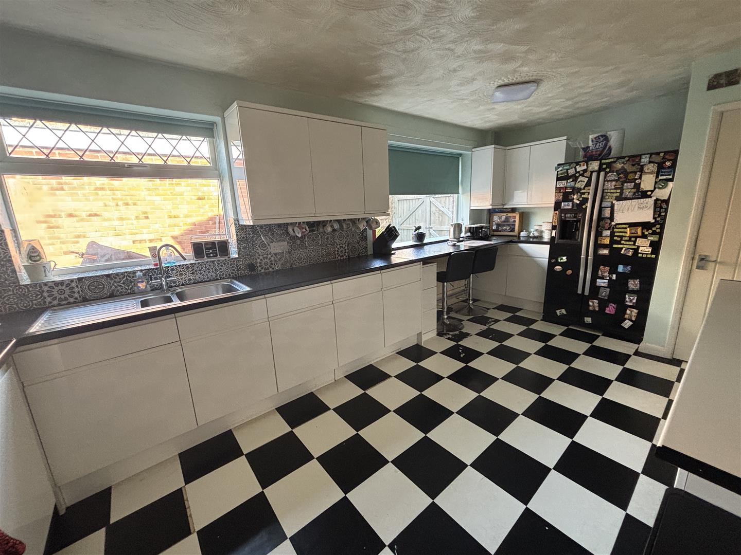 Kitchen - 5.05m x 3.06m (16'6" x 10'0") - Two UPVC double glazed windows to side, tiled floor, breakfast bar with radiator under. Fitted with a modern range of base, drawer & eye level units, work surfaces with tiled surrounds, one and a half bowl stainless steel sink unit with mixer taps. Built-in electric double oven, 5 ring gas hob. Integrated dishwasher, space for additional appliances.