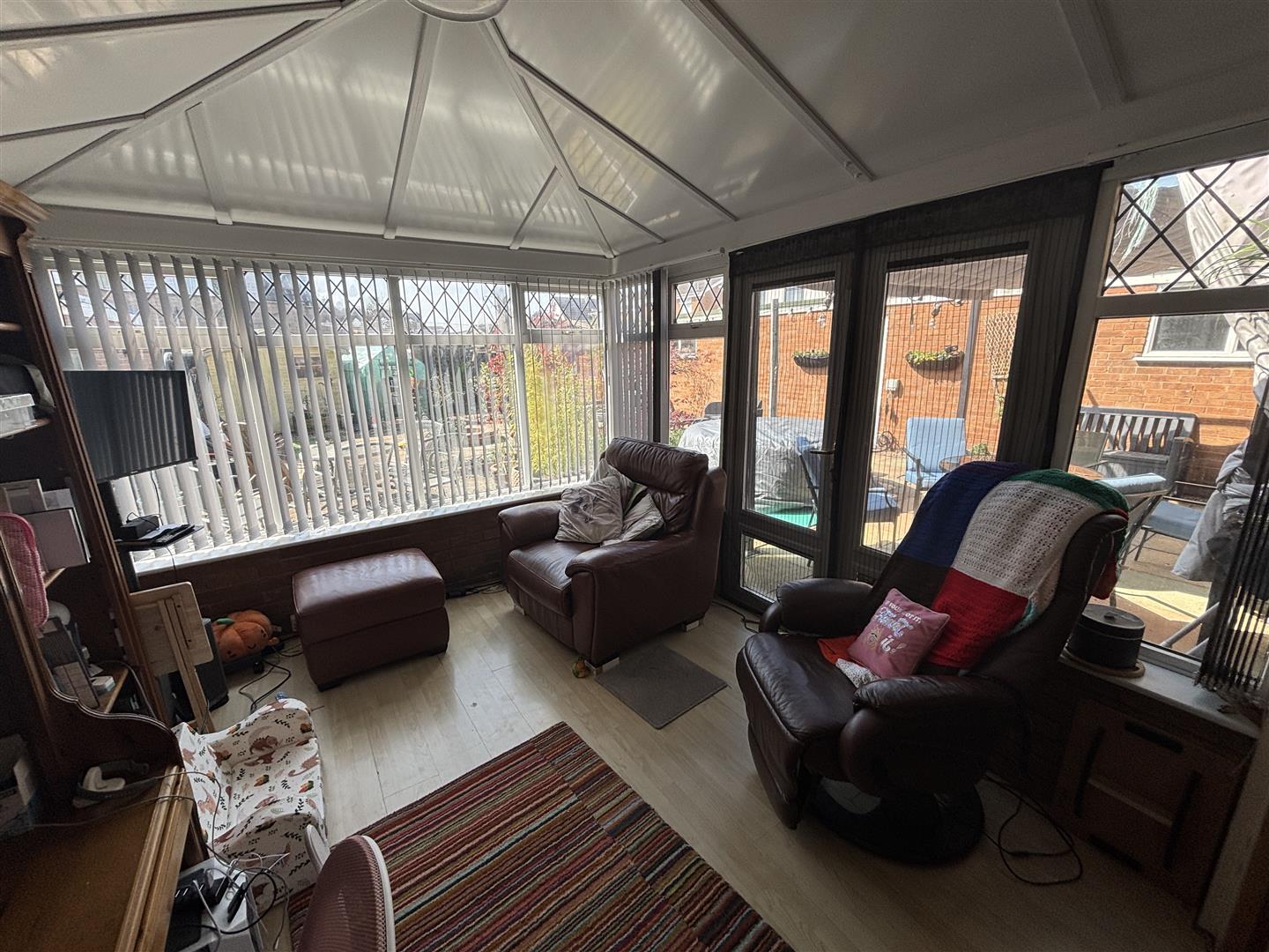 Conservatory - 3.42m x 3.07m (11'2" x 10'0") - UPVC double glazed conservatory with brick base, laminate floor and French doors to garden.