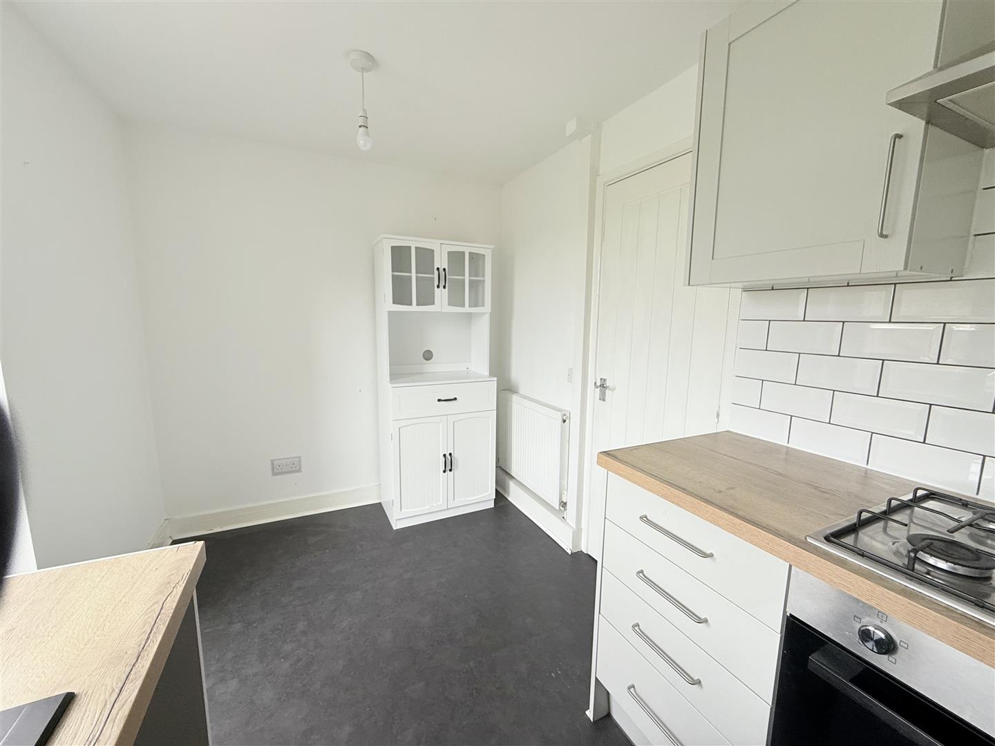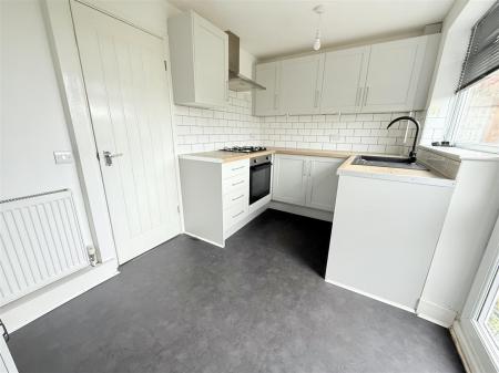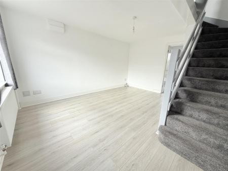 The ground floor features a light and airy living room with stairs rising to the first floor, providing a practical and open layout. To the rear is a stylish fitted kitchen, equipped with a range of modern wall and base units complemented by a work surface and inset sink drainer. Integrated appliances include an oven, hob, and extractor fan, with additional space for further appliances. There is also room to accommodate a breakfast table and chairs, making this space ideal for both everyday dining and entertaining.