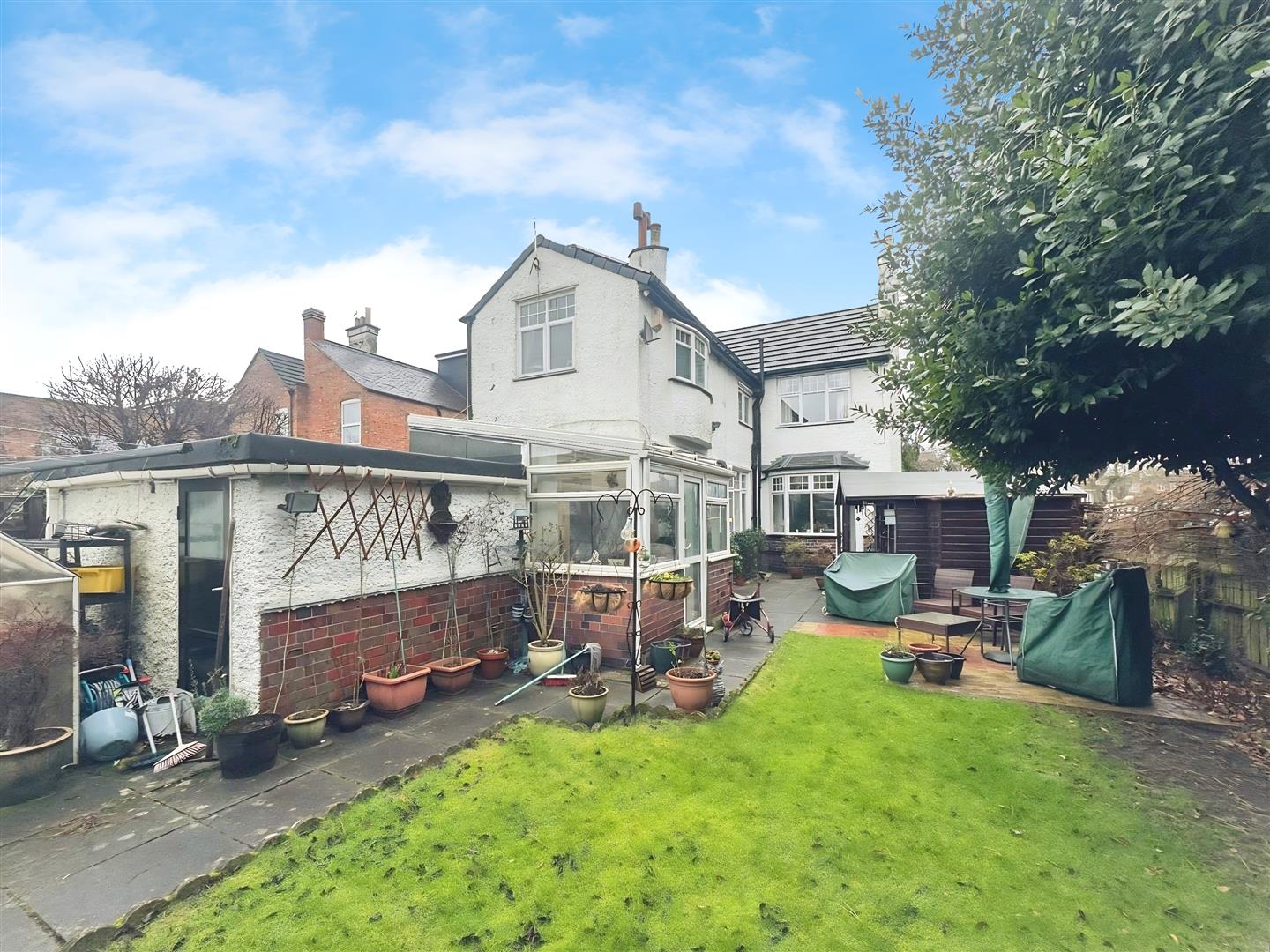 Externally, the rear garden features a combination of patio and lawn, providing an excellent outdoor space for relaxation and entertaining. To the bottom of the garden is a detached garage, which can also be accessed via the side of the property.