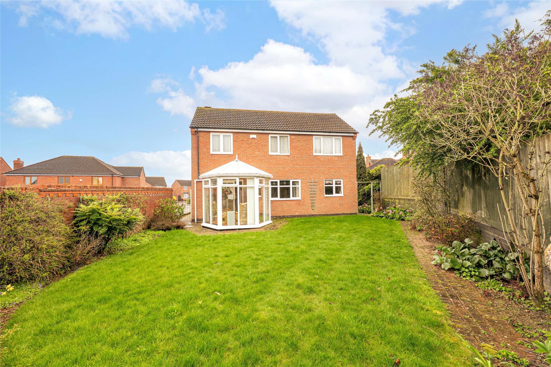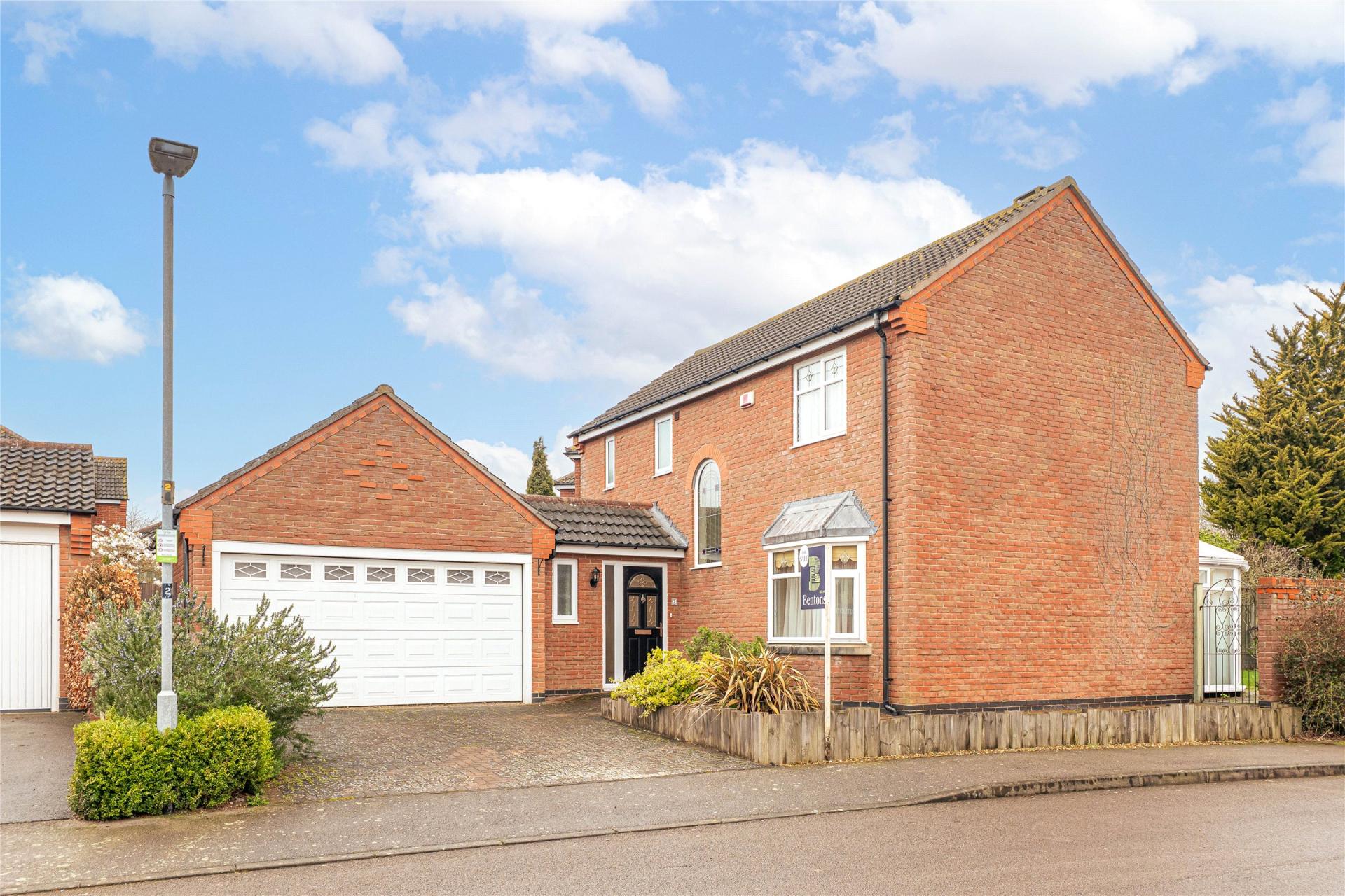 Located at the edge of this highly regarded development and having a private plot abutting open space, this four bedroom detached home offers sizeable, well arranged accommodation, boasting three reception rooms to the ground floor, in addition to the kitchen, utility and cloaks/WC. A feature central return staircase with tall arched window leads to the first floor where there are four well proportioned bedrooms with a principal bedroom having fitted furniture and an en-suite and a main bathroom serving the remaining bedrooms. Outside the plot is a particular feature of this property being substantial in size and highly private and partially walls with a large central lawn and various seating areas, a block paved driveway and double garage.