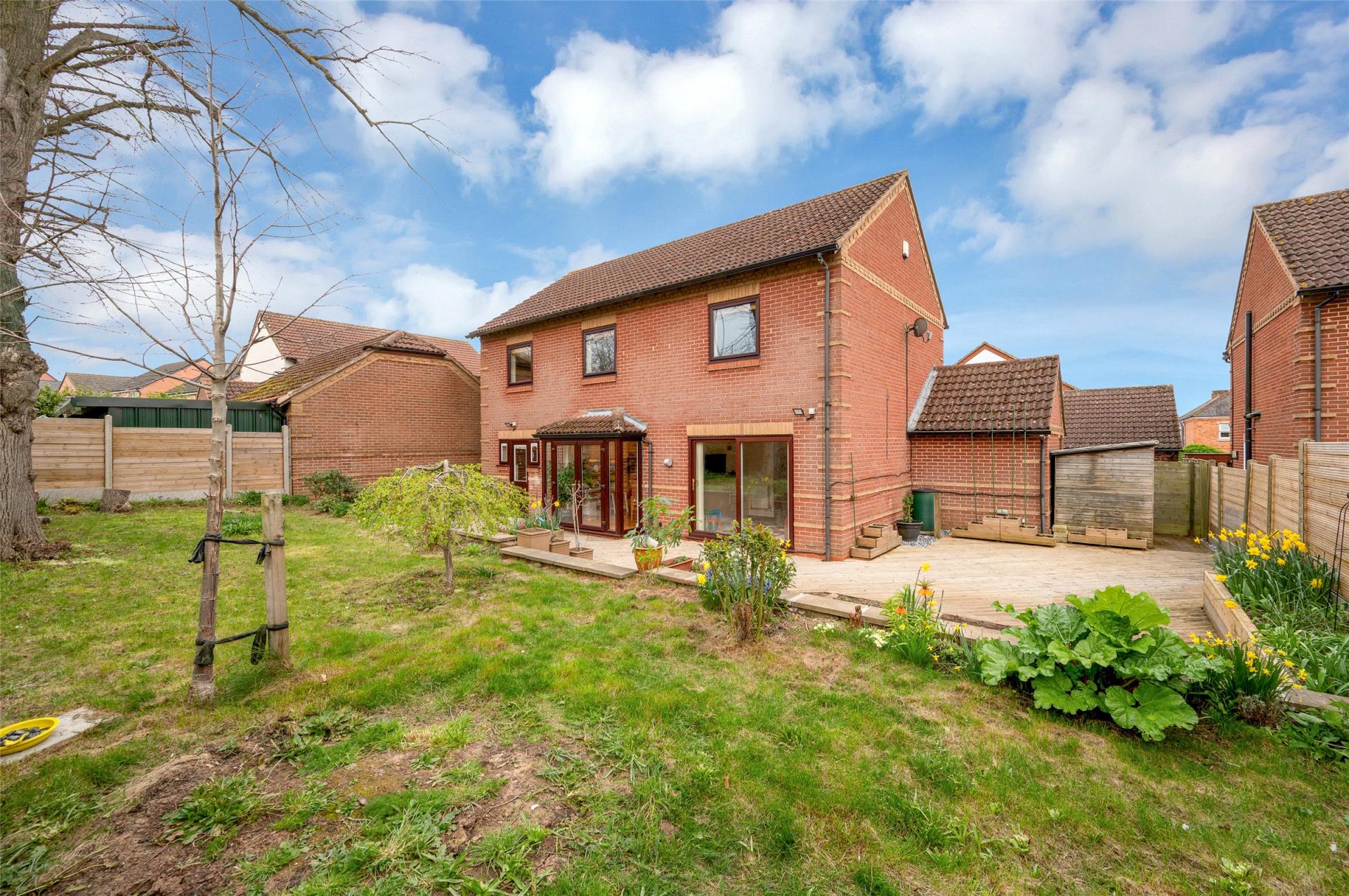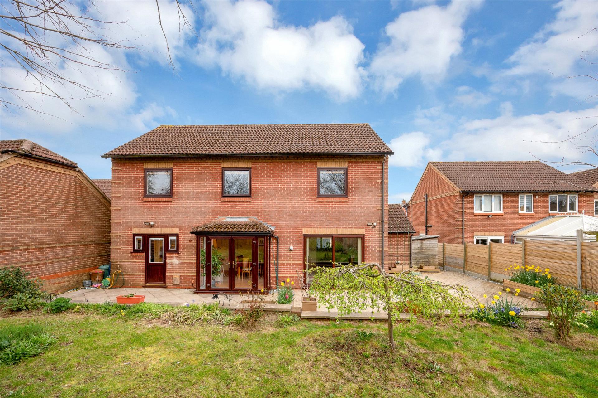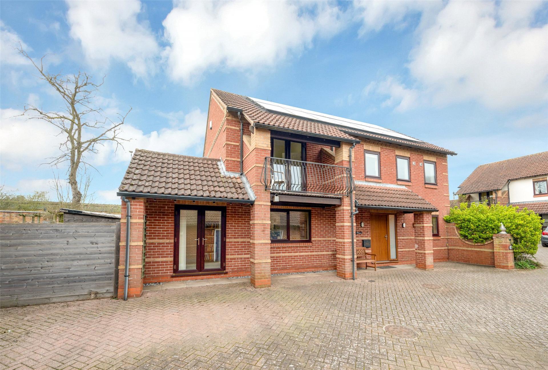 Located in a no-through road position in an exclusive development is this spacious four bedroomed detached home situated on a highly private and established plot and benefitting from individual design features. Upon entering the driveway through the brick pillared entrance, there is a vast block paved frontage, a canopied porch at the front of the property leads through to a welcoming and sizeable entrance hallway. At the heart of the home is a substantial L-shaped living/dining kitchen, formerly two spaces opened into one to create a large family living space with a high quality fitted kitchen with oak tops and central peninsular. There is a multitude of glazing to both the front and rear and French doors connect through to the garden. In addition to this fantastic space there is a large lounge, also benefitting from a dual aspect and a further reception room with French doors connecting to the front of the property, ideal as a home office, family room or potential ground floor bedroom. There is also a cloaks/WC. Upstairs a split staircase leads to the bedrooms of which there are four, all of which would accommodate a double bed with the main bedroom having a luxury en-suite shower room and one of the other bedrooms having its own external decked balcony. Serving the remaining rooms is a refitted bathroom. Outside a real feature of the property is a partially walls and private garden with large patio terrace that wraps around the property and an established raised lawn with well stocked flower beds. The property has been beautifully maintained and upgraded with a recently replaced gas central heating boiler and windows throughout. The property provides ready to move into accommodation in a highly desirable part of the town. Early viewing is strongly recommended.