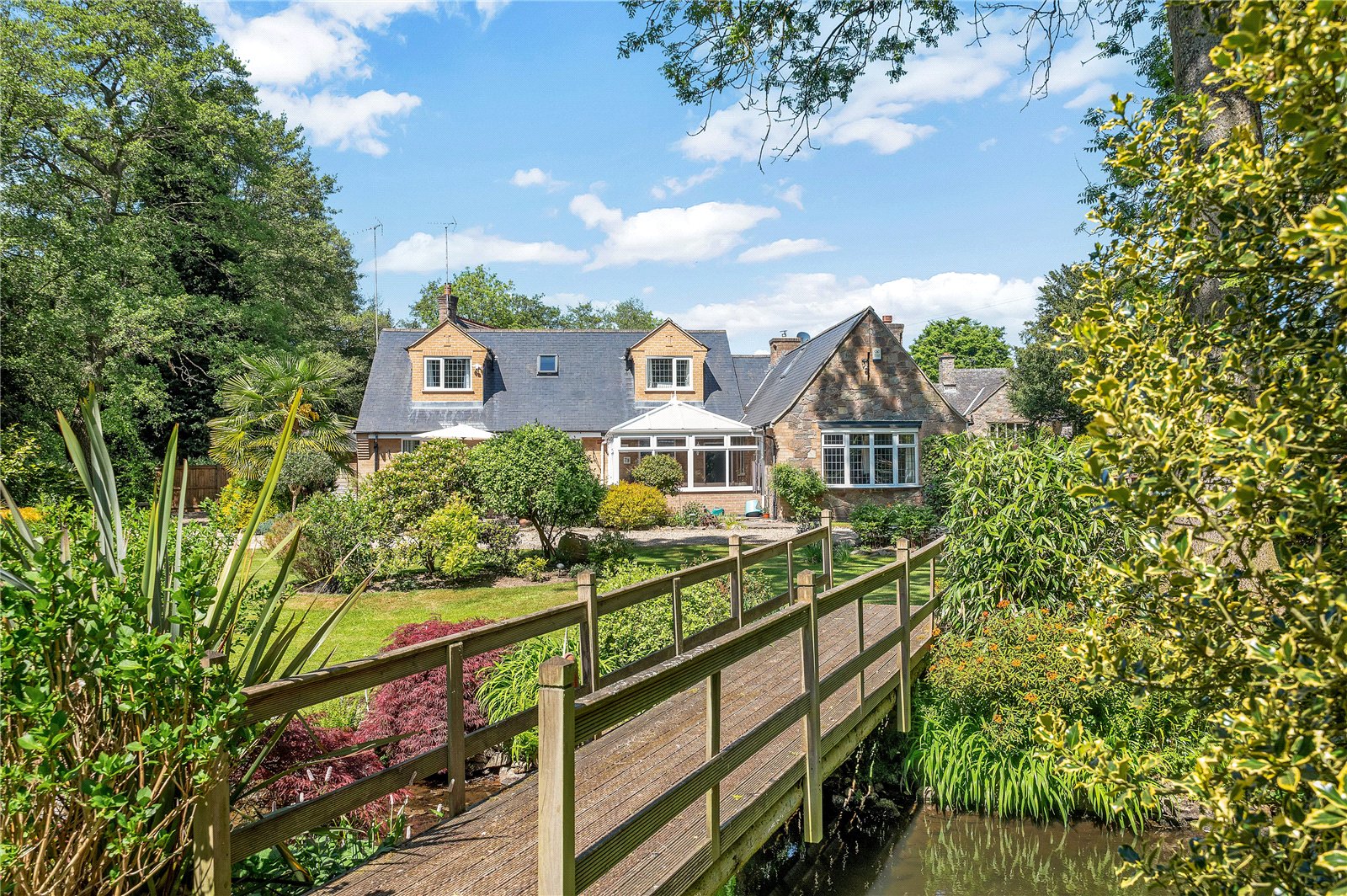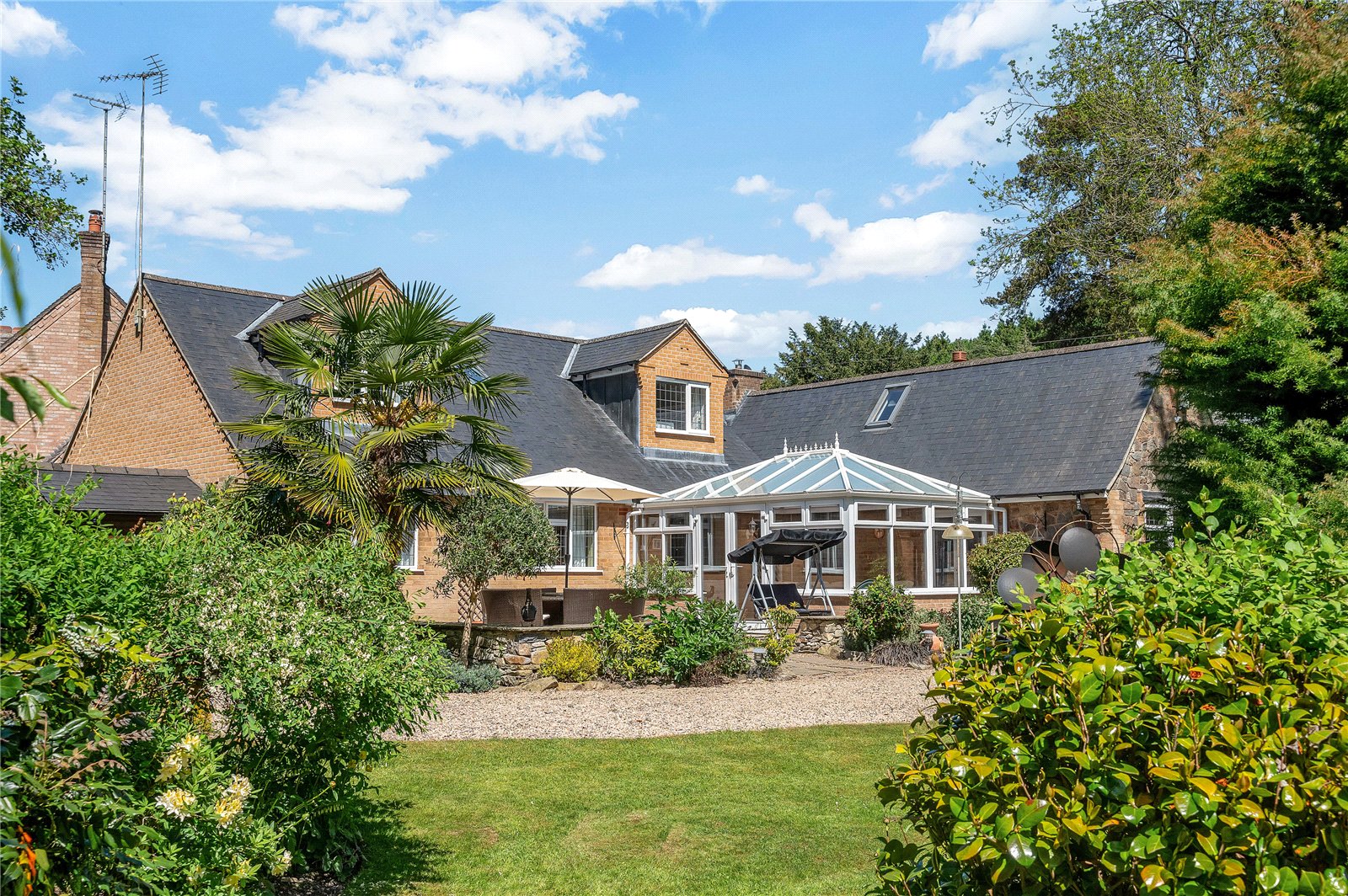 A stunning five bedroomed, individually styled detached residence lying in magnificent grounds extending to approximately 0.76 acre at the centre of this highly sought after Charnwood village. The property is brick and stone built with slate roof and the flexible internal accommodation comprises oak porch into S-shaped hallway, lounge and dining area, garden room, quality fitted kitchen, utility room, rear sitting room and separate bedroom (could be used as a self-contained annex if required). There is a further double bedroom, study/bedroom five and further shower room. The first floor leads to two double bedrooms, one leading into extensive loft storage with further potential for extension of the existing accommodation (subject to normal planning), and luxury appointed bathroom. Outside, the property is set well back from Main Street with brick paved and gravelled driveway which envelops the property affording numerous car standing with the addition of potential boat/caravan standing. The gardens are a particular feature of the property containing many specimen plants, mature trees, stocked borders, summerhouse and garden shed. There is a brook through the centre of the garden with feature bridge and offering complete privacy.