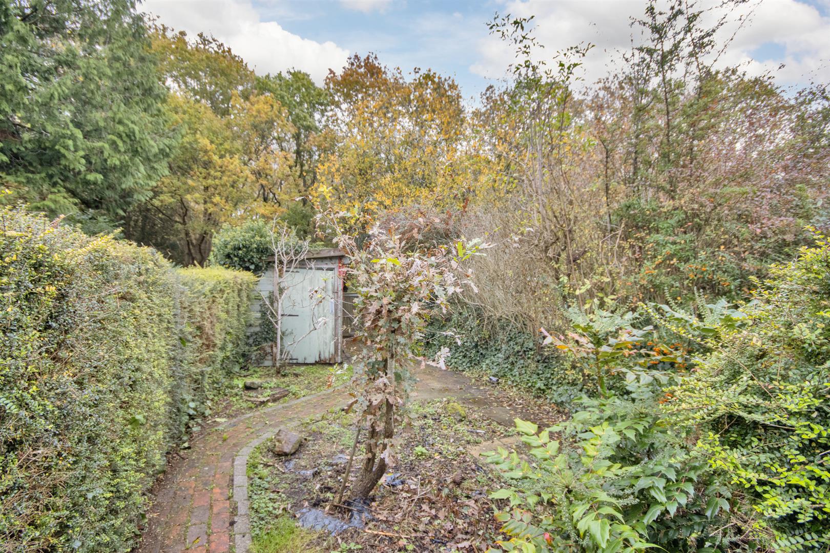 .Brick built utility outhouse with space and plumbing for washing machine and Worcester Calor gas boiler. Brick built garden store. Rear garden being mainly paved with brick pathways and hedges. Good sized Garden Shed with double glazed window. Access to block paved driveway.