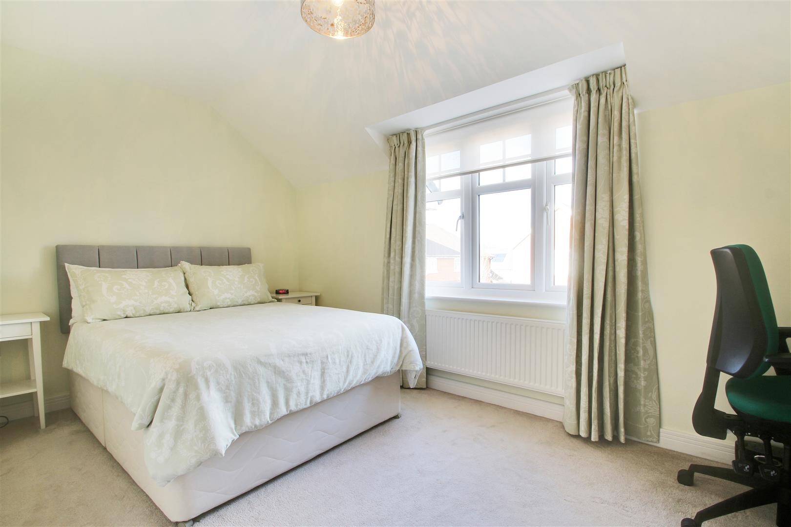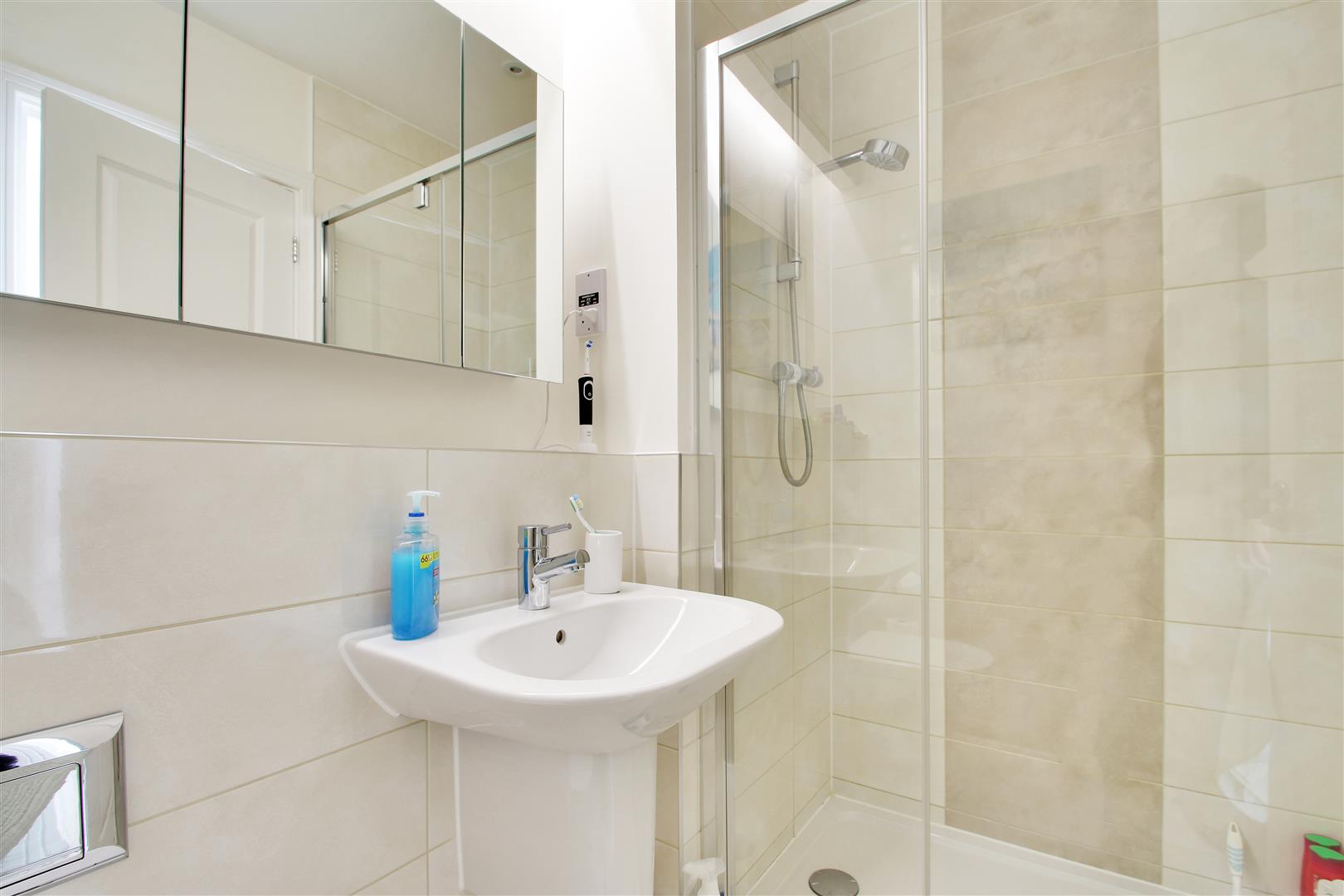 .Main bedroom with aspect to rear overlooking the garden, fitted wardrobes and contemporary fitted en-suite shower room comprising tiled double walk in shower enclosure, concealed cistern w.c, wall mounted basin, chrome ladder towel rail, ceramic tiled floor and walls to half height, extractor. Further double bedroom with aspect to front.