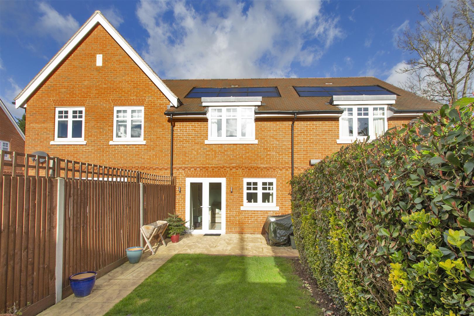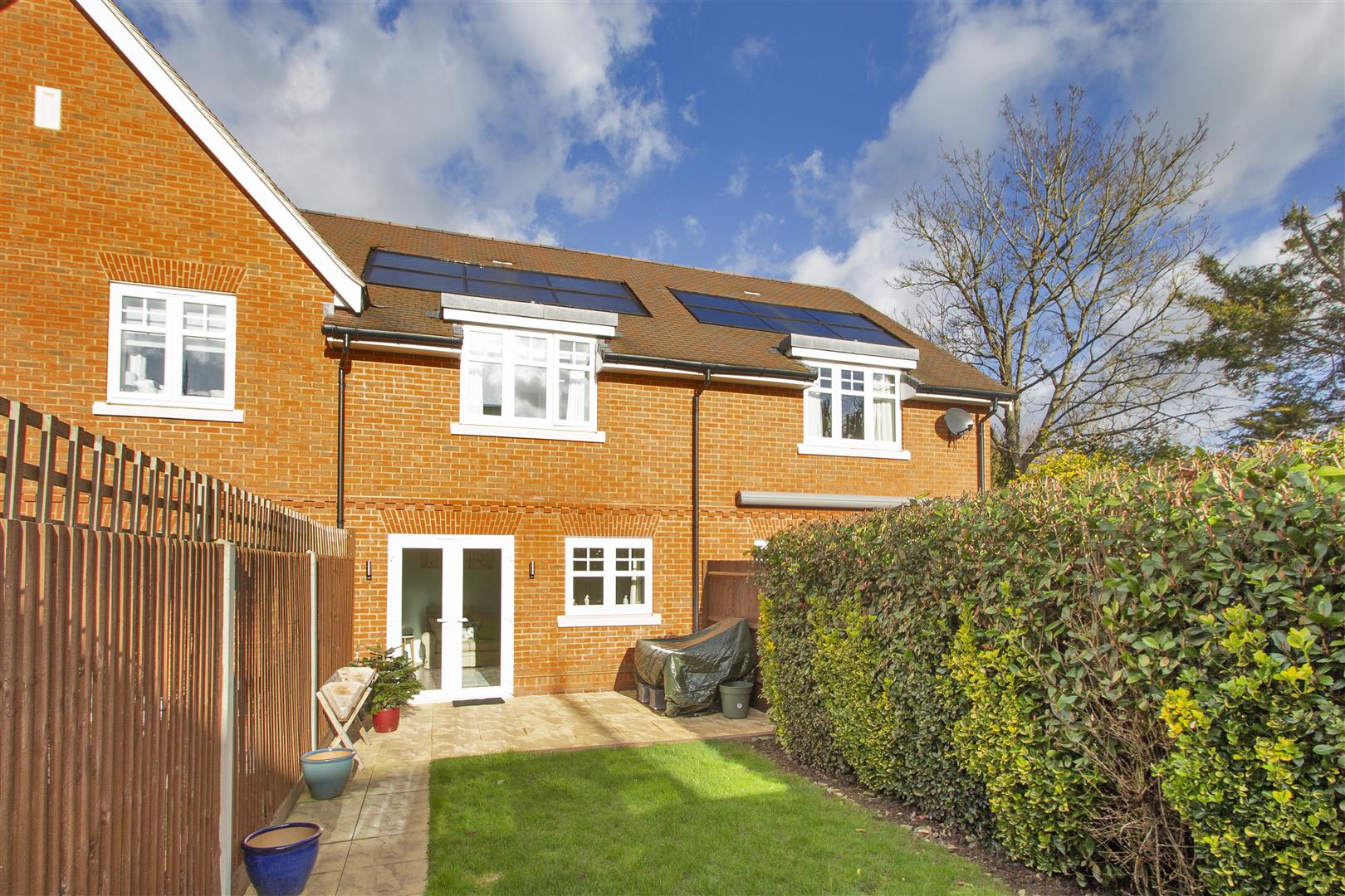 .Enclosed rear garden enjoying a paved terrace across the rear taking full advantage of the southerly aspect with pathway to rear. Mainly laid to lawn with fenced and mature hedged boundaries, garden shed to rear and wooden gate giving access to right of way behind neighbouring property. External lighting and tap.