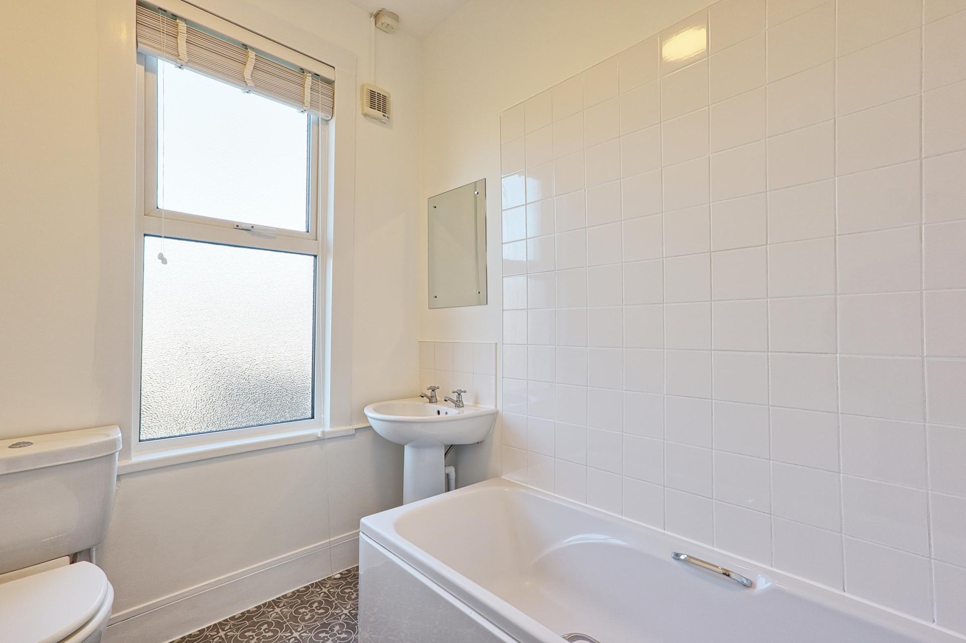 BATHROOM Three-piece suite comprising panel bath with shower attachment WC pedestal wash hand basin, lino flooring double glaze obscure and double glaze window to rear