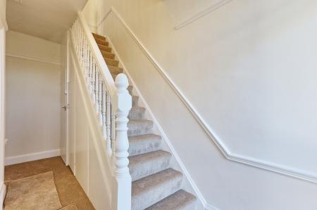 ENTRANCE HALLWAY 15' 1" x 5' 4" (4.6m x 1.63m) Stairs to floor with under stair storage cupboard. Laminate flooring . Radiator. Dado rail. Coving to ceiling. Door to