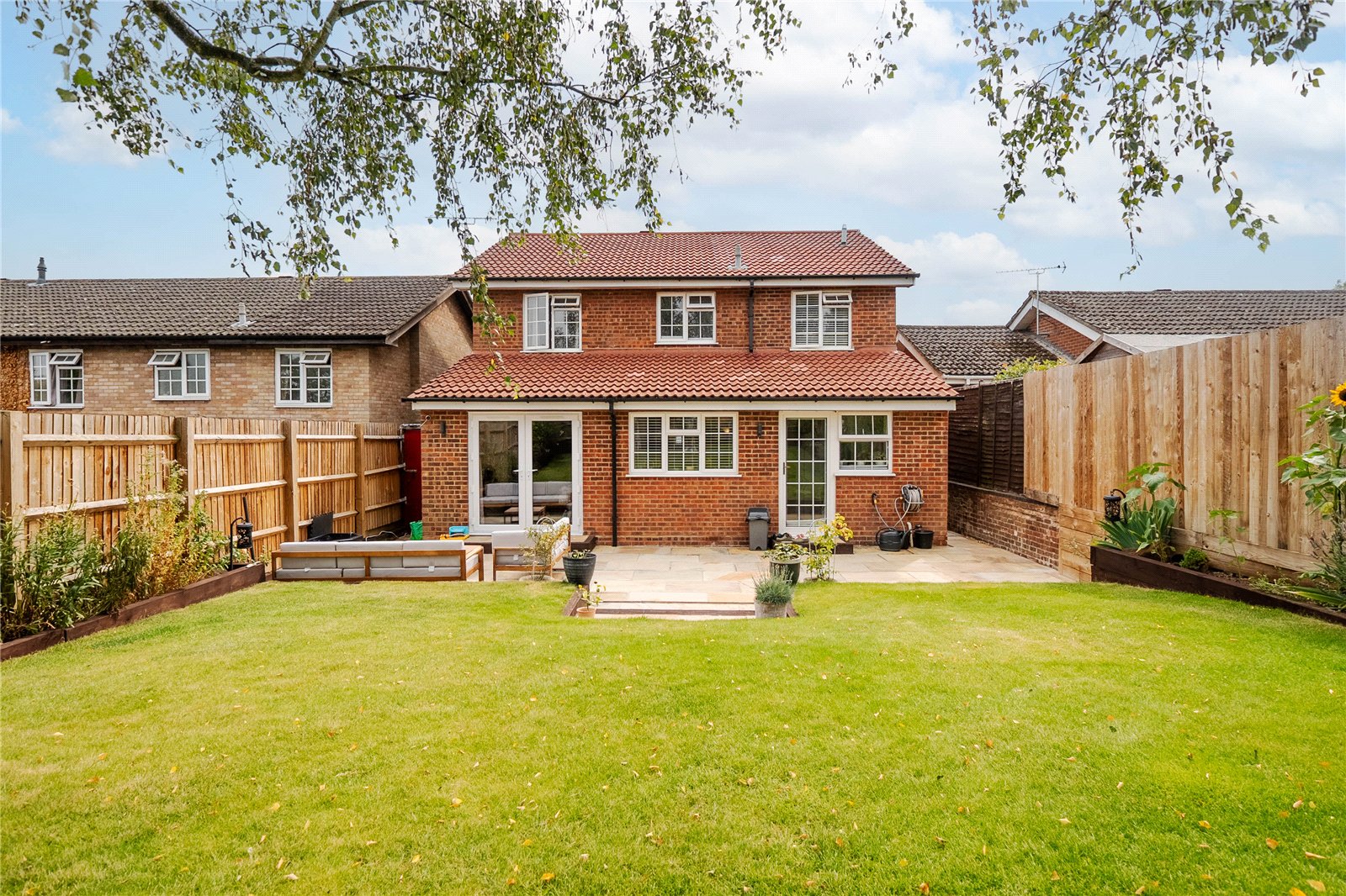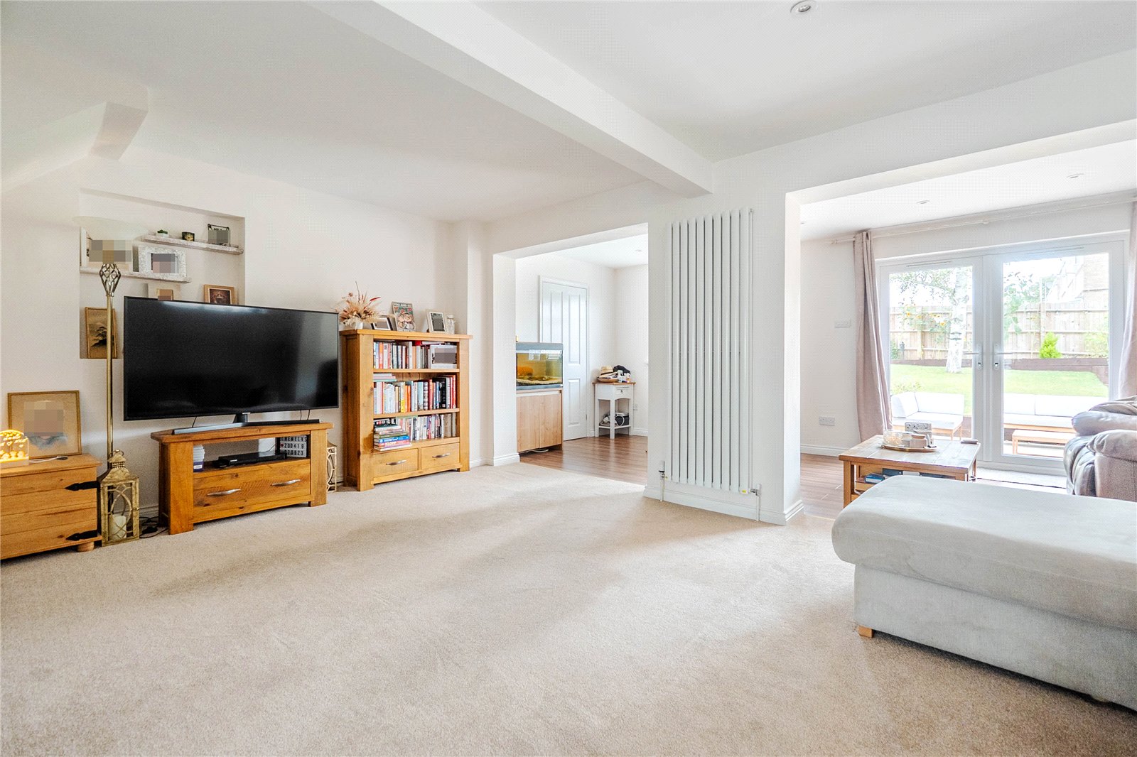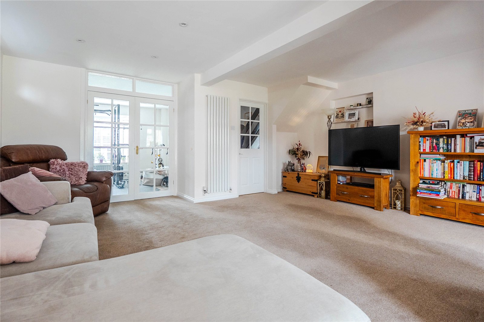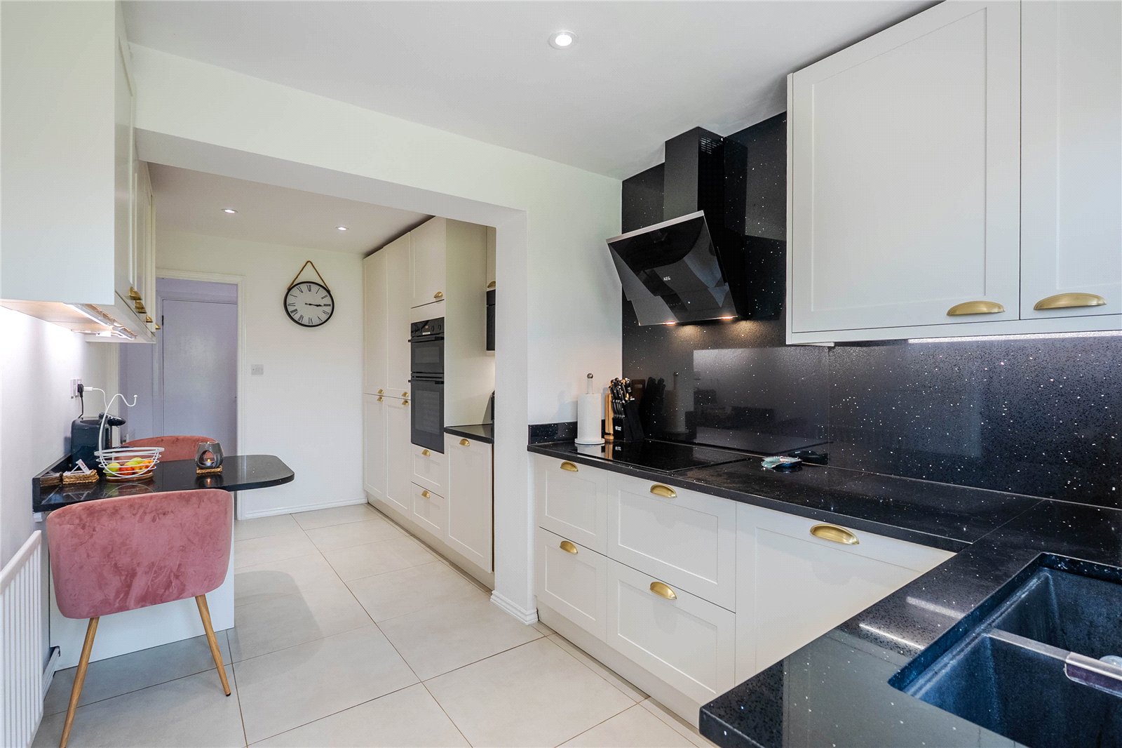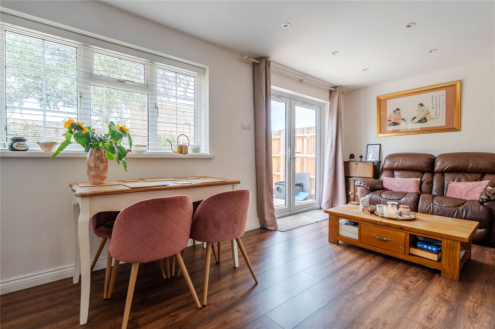 From the moment you arrive, the property’s striking red front door and matching garage set a welcoming tone. Inside, the accommodation flows beautifully, with light-filled rooms and a thoughtful layout.