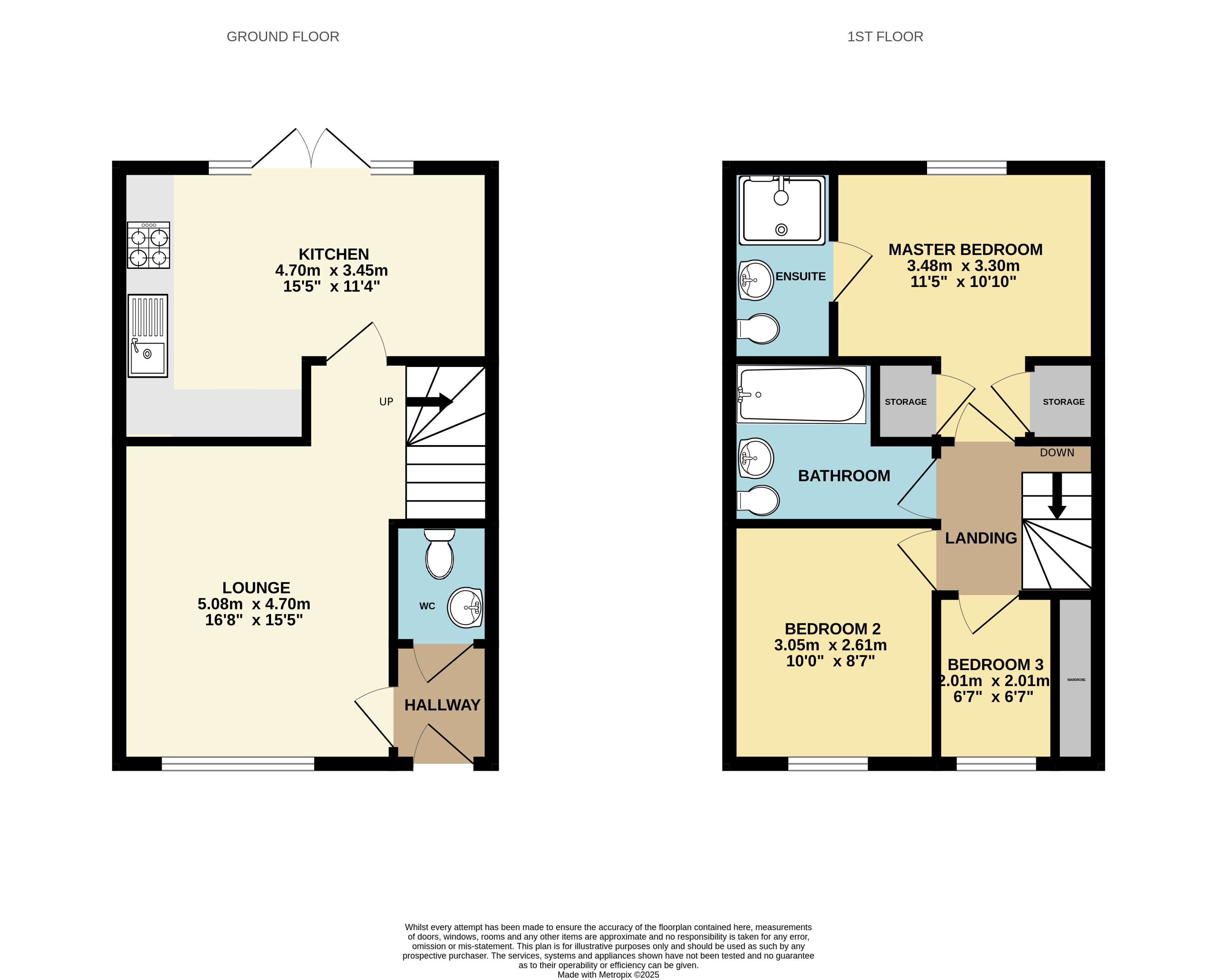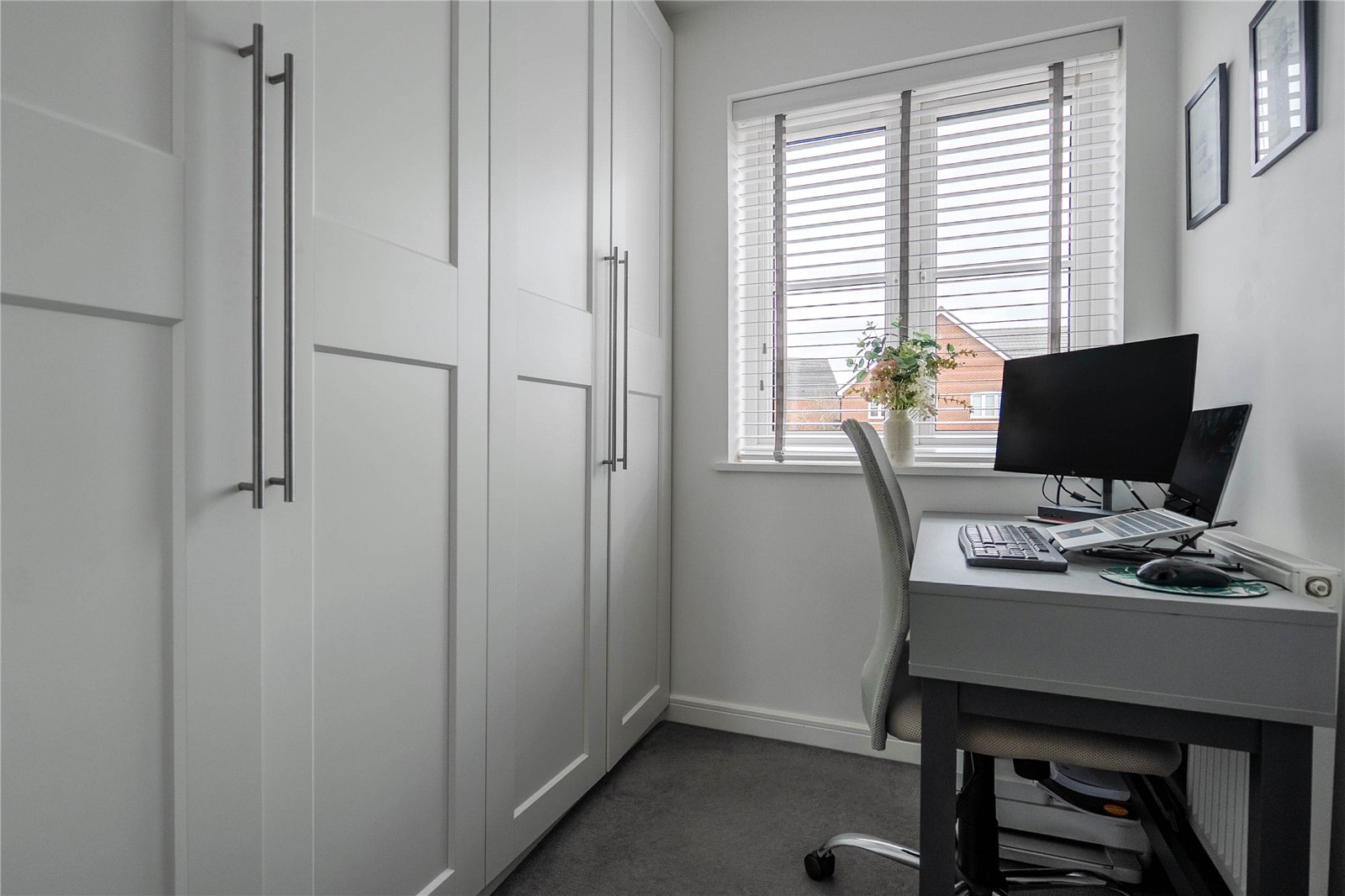 Upon entering the home, you’re welcomed by an entrance hall leading to a spacious lounge. Beyond this, the modern kitchen/diner is well-equipped with ample storage, integral appliances, and patio doors opening to the rear garden. The ground floor also features a cloakroom and additional storage space.
