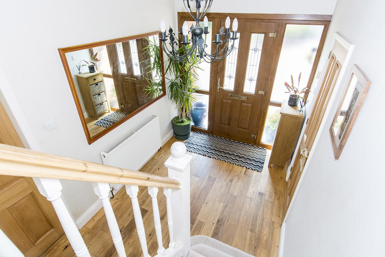 Entrance Hall - Enter via composite door into the hallway with two windows to the side aspect. Solid oak flooring and stairs leading to the first floor.