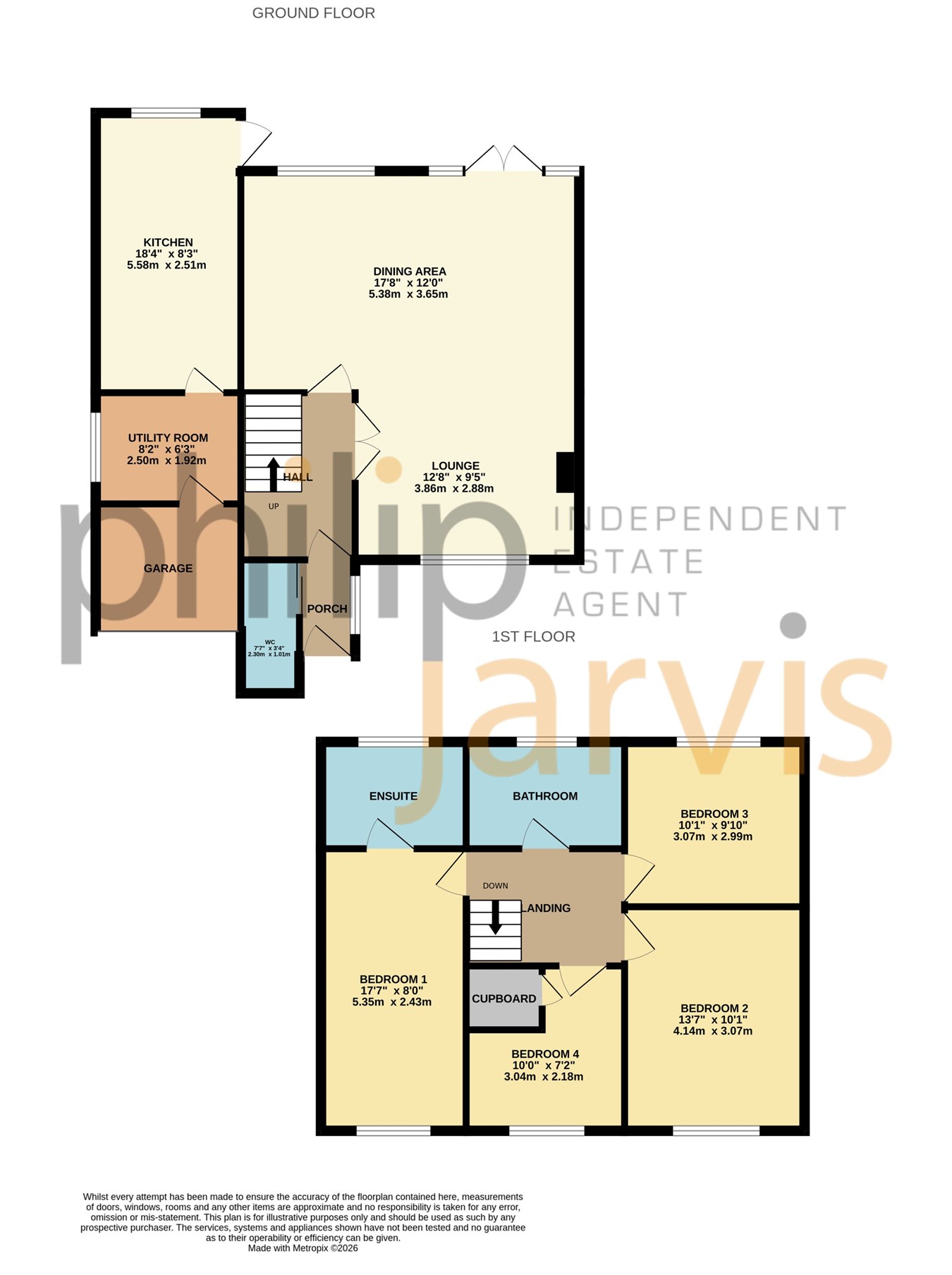 To the first floor there is a master bedroom with an ensuite, three further bedrooms and a family bathroom.