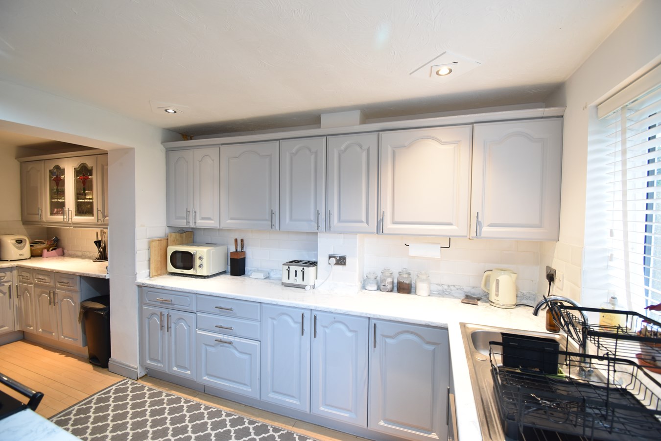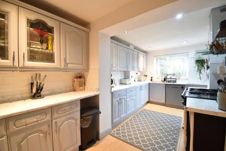 18' 4" x 8' 3" (5.59m x 2.51m) Double glazed window to rear. Double glazed door to side. Range of base and wall units. Stainless steel 1 1/2 bowl sink unit. Space for range style cooker with extractor over. Plumbing for dishwasher. Space for fridge. Radiator. Laminate floor. Door to