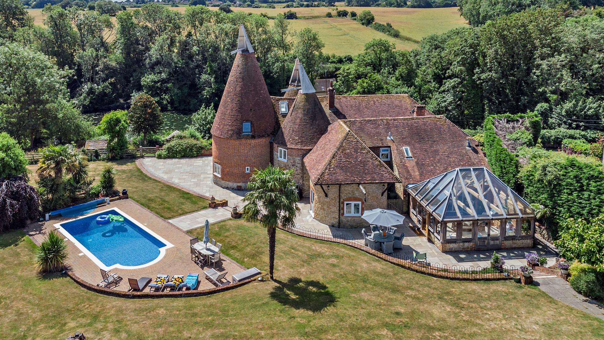 This exceptional five-bedroom Oast house, which includes a separate annexe and was once part of Lady Baillie's prestigio...