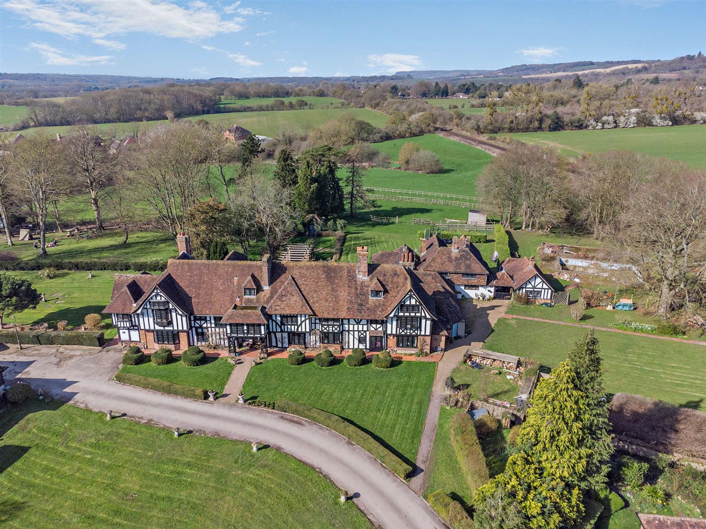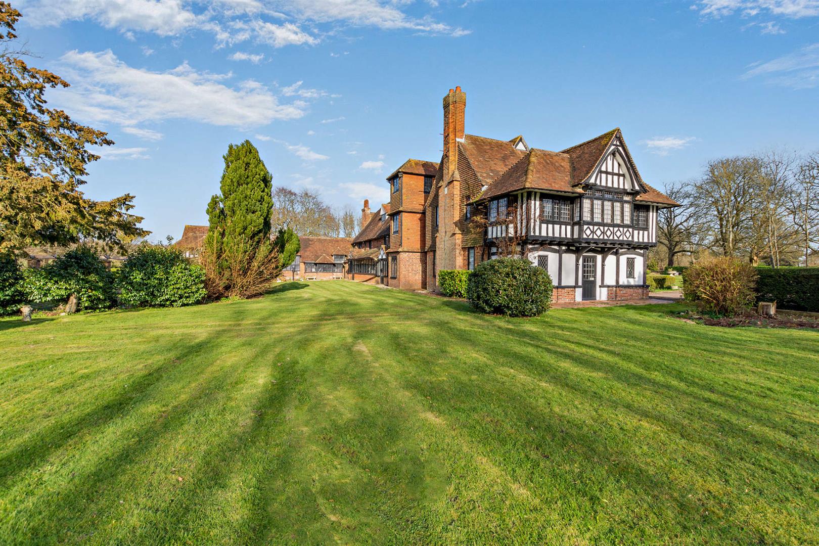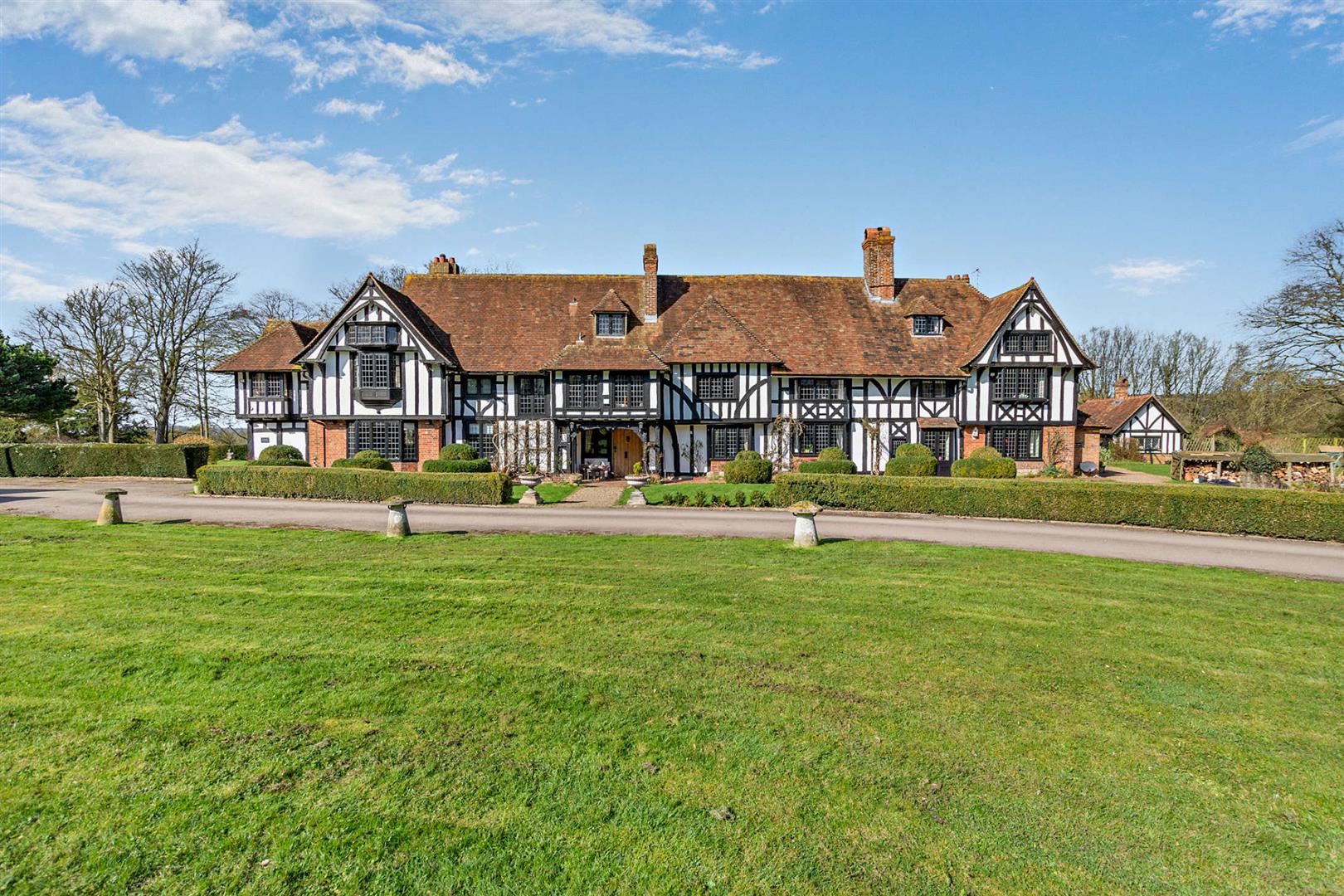 An exceptionally attractive Grade II listed manor house, dating back to the 15th century, with an adjoining cottage, offering over 8,500 sqft of accommodation in total, set within approximately 14 acres of picturesque grounds, and conveniently located near the historic village of Lenham.